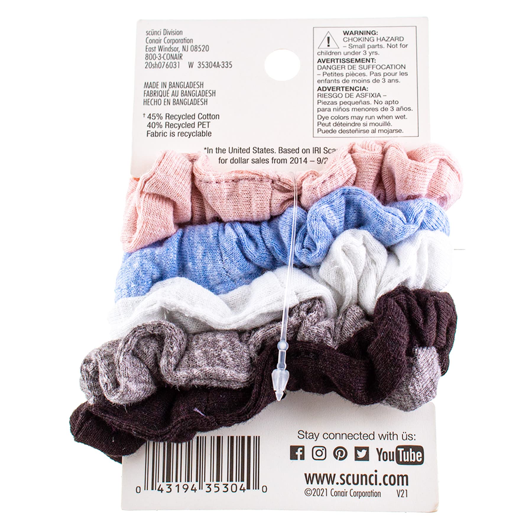 No. 1 hair accessory brand (in the United States. Based on IRI Scan Data for dollar sales from 2014 - 9/2020). Scunci has you covered with the basics you rely on every day and the special looks for a little something extra. On the go, day to night, whatever life calls for: U Got This. www.scunci.com. Stay Connected with Us: Facebook. Instagram. Pinterest. Twitter. YouTube. I am - recycled cotton (45% recycled cotton 40% recycled PET fabric is recyclable). Made in Bangladesh.