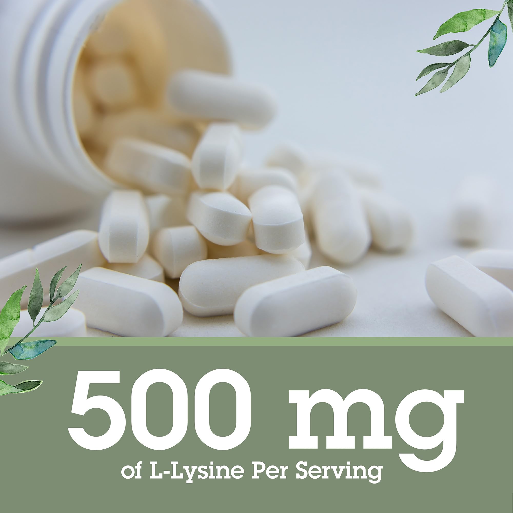 L-Lysine 500 mg tablets provide a convenient way to help maintain healthy levels of this essential amino acid, which the body cannot produce on its own. Each vegan-friendly, easy-to-swallow tablet delivers 500 mg of pure L-Lysine to support daily wellness when dietary intake from foods such as meat, fish, dairy, tofu, beans, and lentils may be insufficient.* L-Lysine supports collagen synthesis an important structural protein in the body.* It also supports muscle recovery from daily activities or exercise, promotes calcium absorption to help support bone health, and helps maintain the body’s immune defenses year-round.* In addition, L-Lysine supports a healthy arginine balance, which plays a role in supporting lip health during times of stress or immune challenges.*