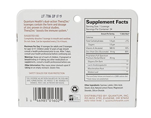 TheraZinc Lozenges are a refreshing and soothing way to meet immune challenges. You also benefit from a proprietary blend of throat comfort herbals including slippery elm and mullein leaf.