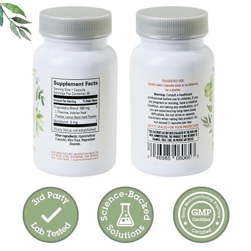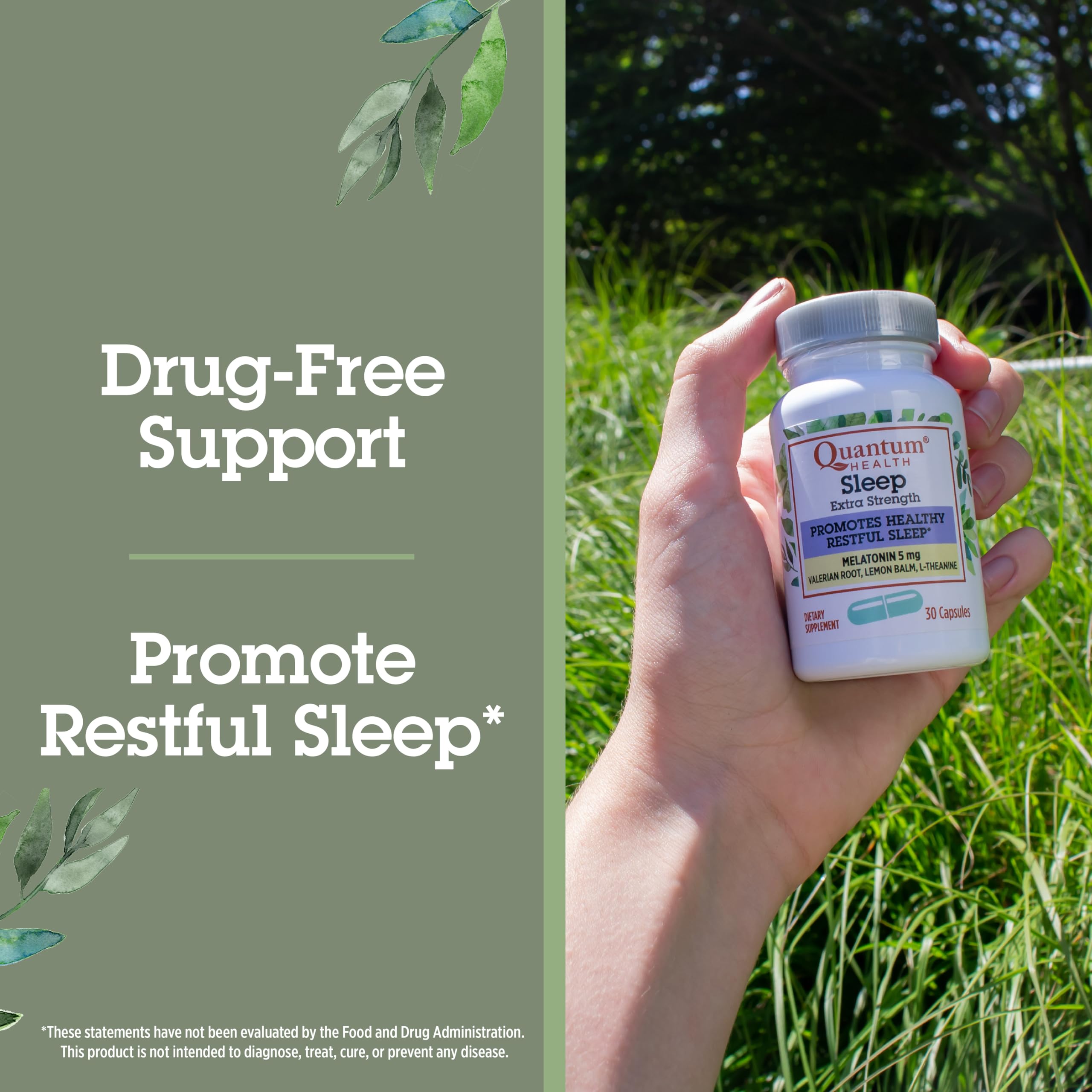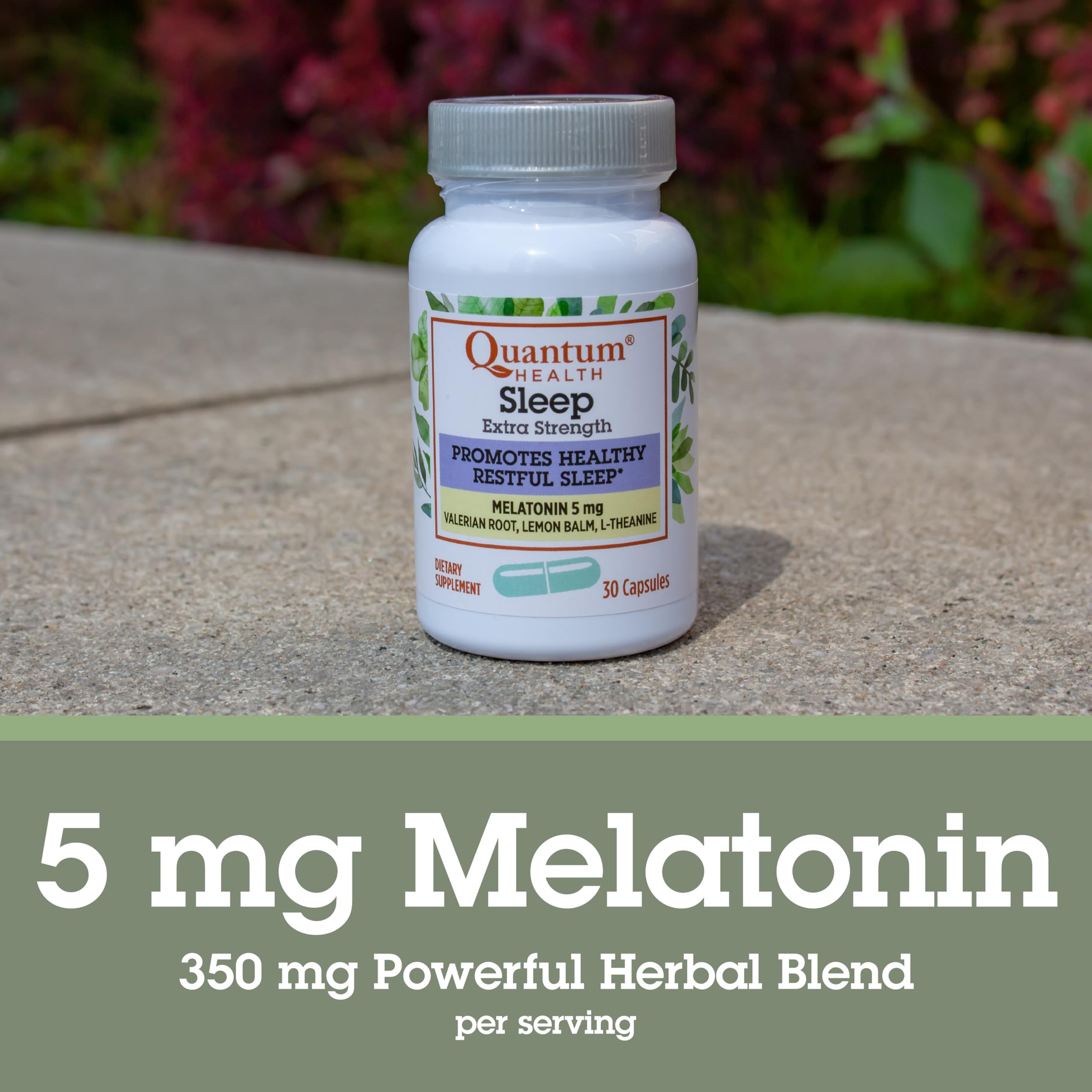 Quantum Health Extra Strength Sleep Melatonin 5mg Healthy Restful Sleep Support with Relaxing Valerian Root & L Theanine Daily Mind & Body Well Being for Women & Men - 30 Capsules
