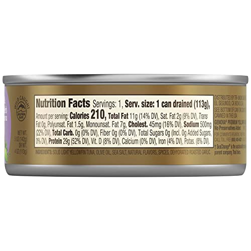 Genova Premium Yellowfin Tuna in Garlic and Tuscan Herb Infused Olive Oil, Wild Caught, Solid Light, 5-Ounce Can (Pack of 1)
