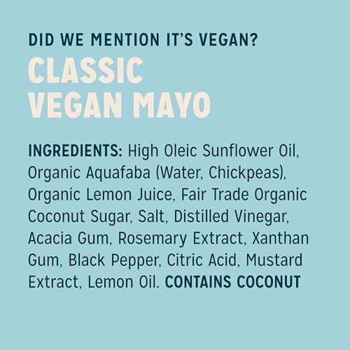 Sir Kensington's Vegan Mayo Classic Keto Diet Certified Gluten Free Certified Vegan Soy Free Non- GMO Project Verified Shelf-Stable 12 oz