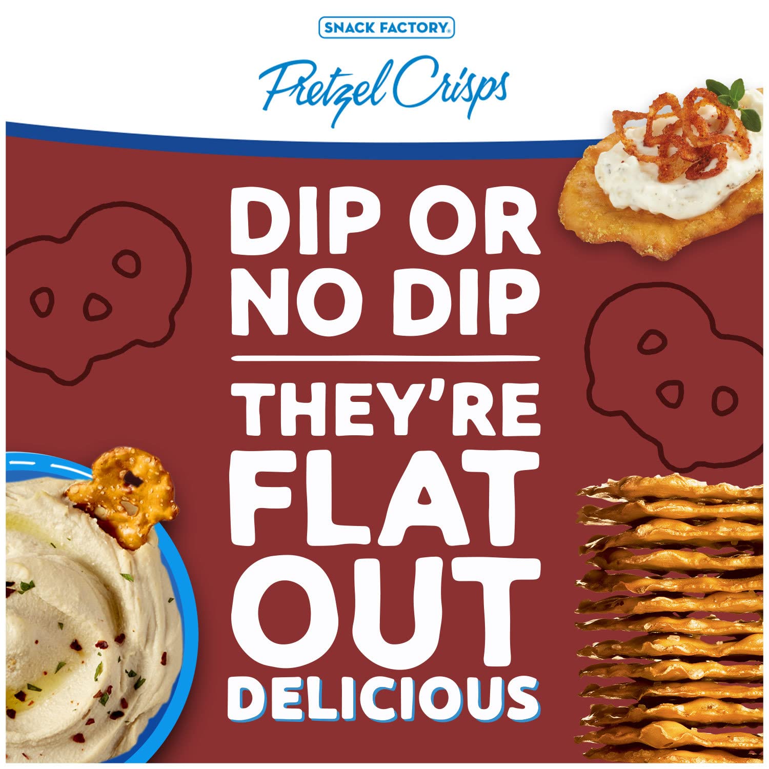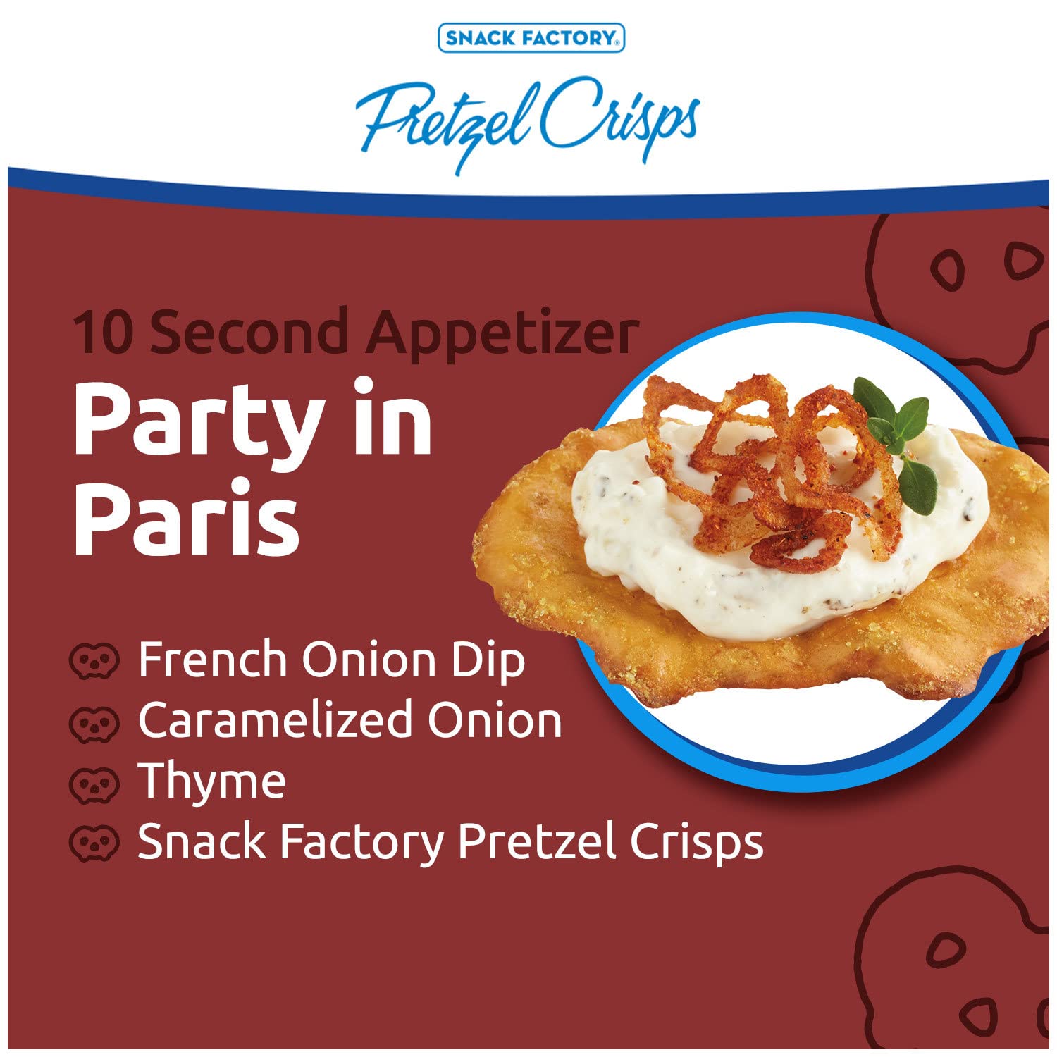 Honey Mustard & Onion Pretzel Crisps marries tangy mustard and onion with the irresistible sweetness of honey. Layer your favorite deli lunch meat, a small slice of cheese, mustard and mayo between two Honey Mustard & Onion Pretzel Crisps. Since 2004, Pretzel Crisps have been a modern twist on an old favorite. Pretzel Crisps are the best part of the pretzel – thin and flavorful with the crunch you love. They're dippable, spreadable, and deliciously snackable. With great gourmet taste from wholesome ingredients, it's the perfect snack anytime!