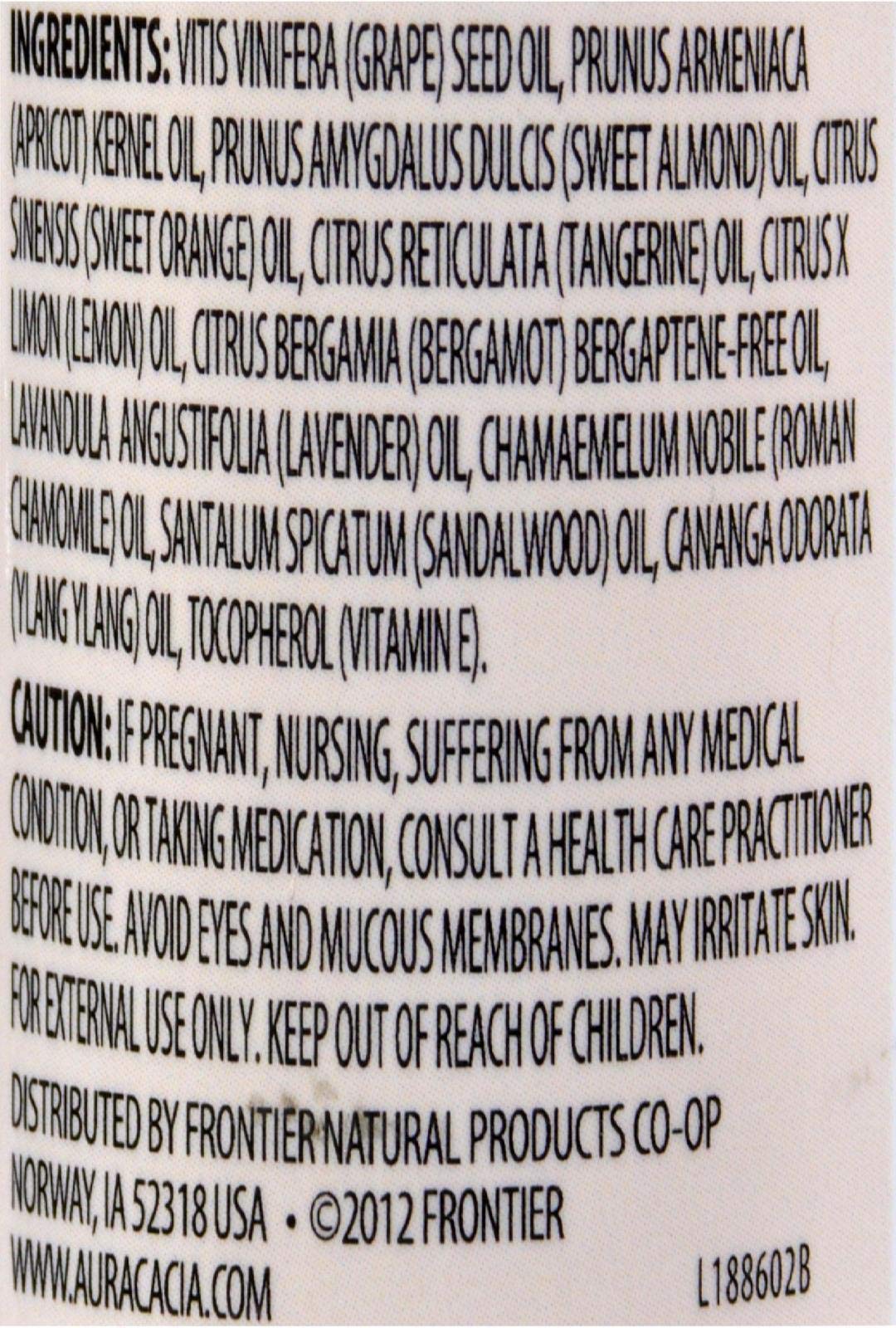 Aura Cacia Aromatherapy bath and massage relaxing sweet orange body oil, It contains minimally processed almond, apricot, grapeseed and Vitamin E oils, carefully blended to provide healthy skin nourishment and smooth, silky glide during massage. An essential oil blend of sweet orange, tangerine, lemon, bergamot bf, lavender, Roman Chamomile, ylang ylang III, and sandalwood is added to facilitate a calm, steady attitude. Pure botanical ingredients. Not tested on animals.