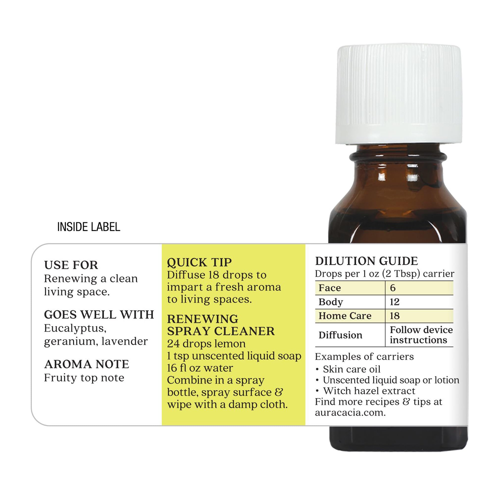 Aura Cacia Lemon Essential Oil, Citrus Limon Oil, Bright Aromatherapy for Diffusers, Room Sprays, Skincare, Custom Blends | 0.5 Fl Oz (Pack of 1)