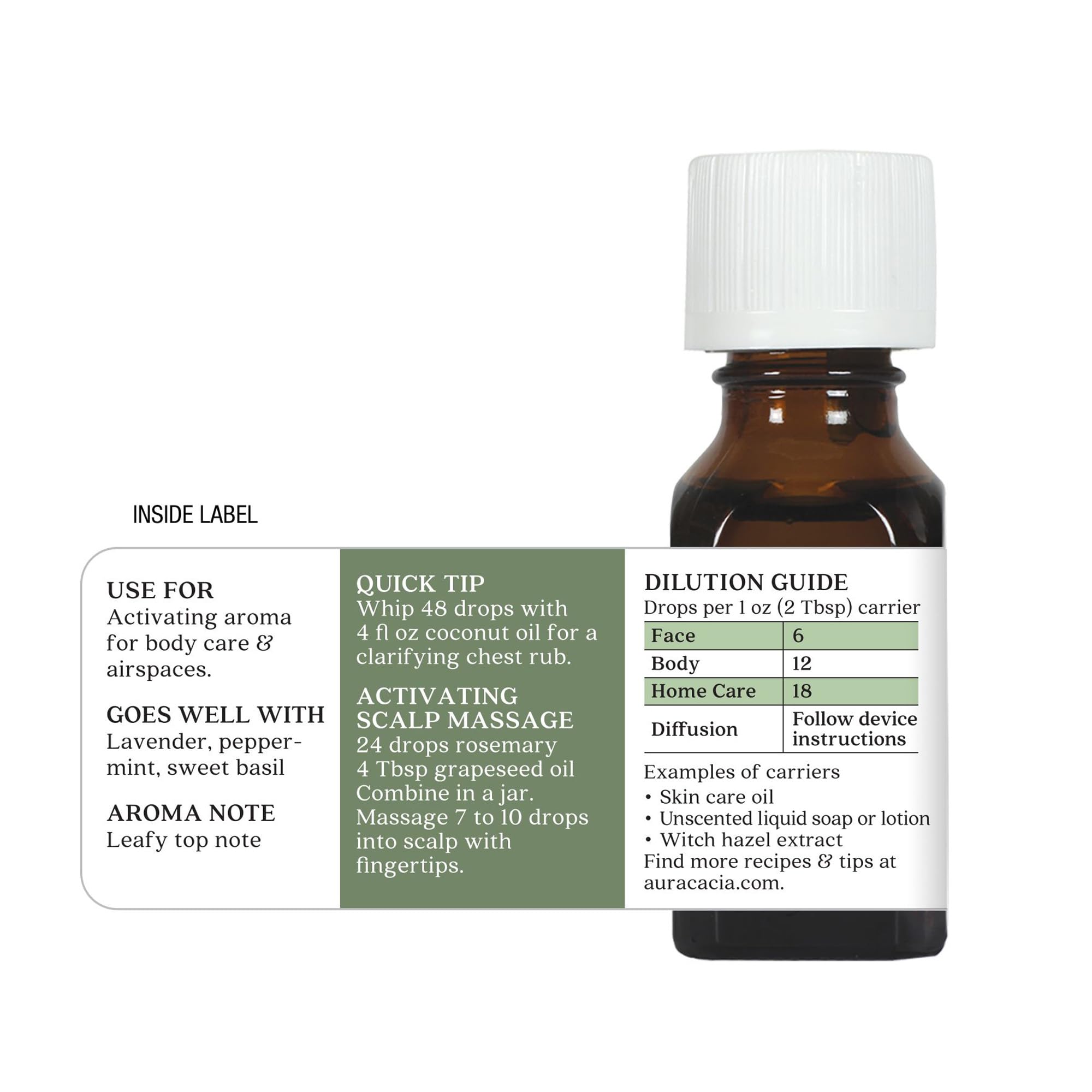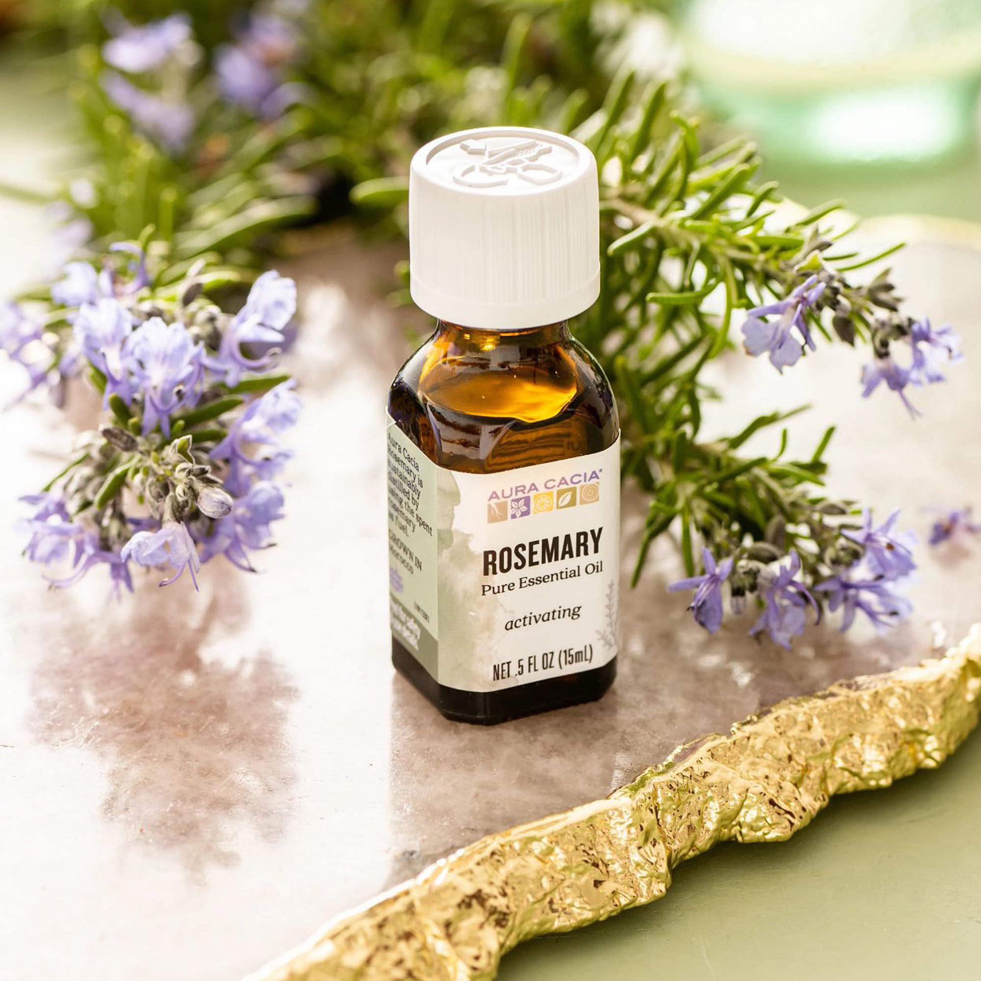 Aura Cacia Rosemary Essential Oil, Pure Rosmarinus Officinalis Oil, Aromatherapy for Skincare, Massage, Hair Care, DIY Blends | 0.5 Fl Oz (Pack of 1)