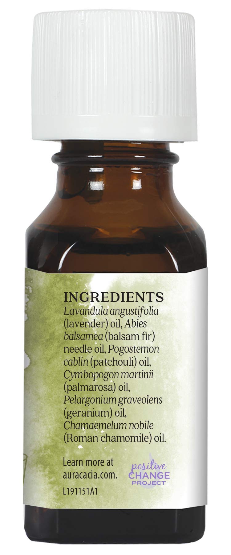 A blend of lavender, balsam fir needle, patchouli, palmarosa, geranium, and Roman chamomile essential oils that promotes relaxation and serenity. Add several drops to an evening bath after a stressful day.