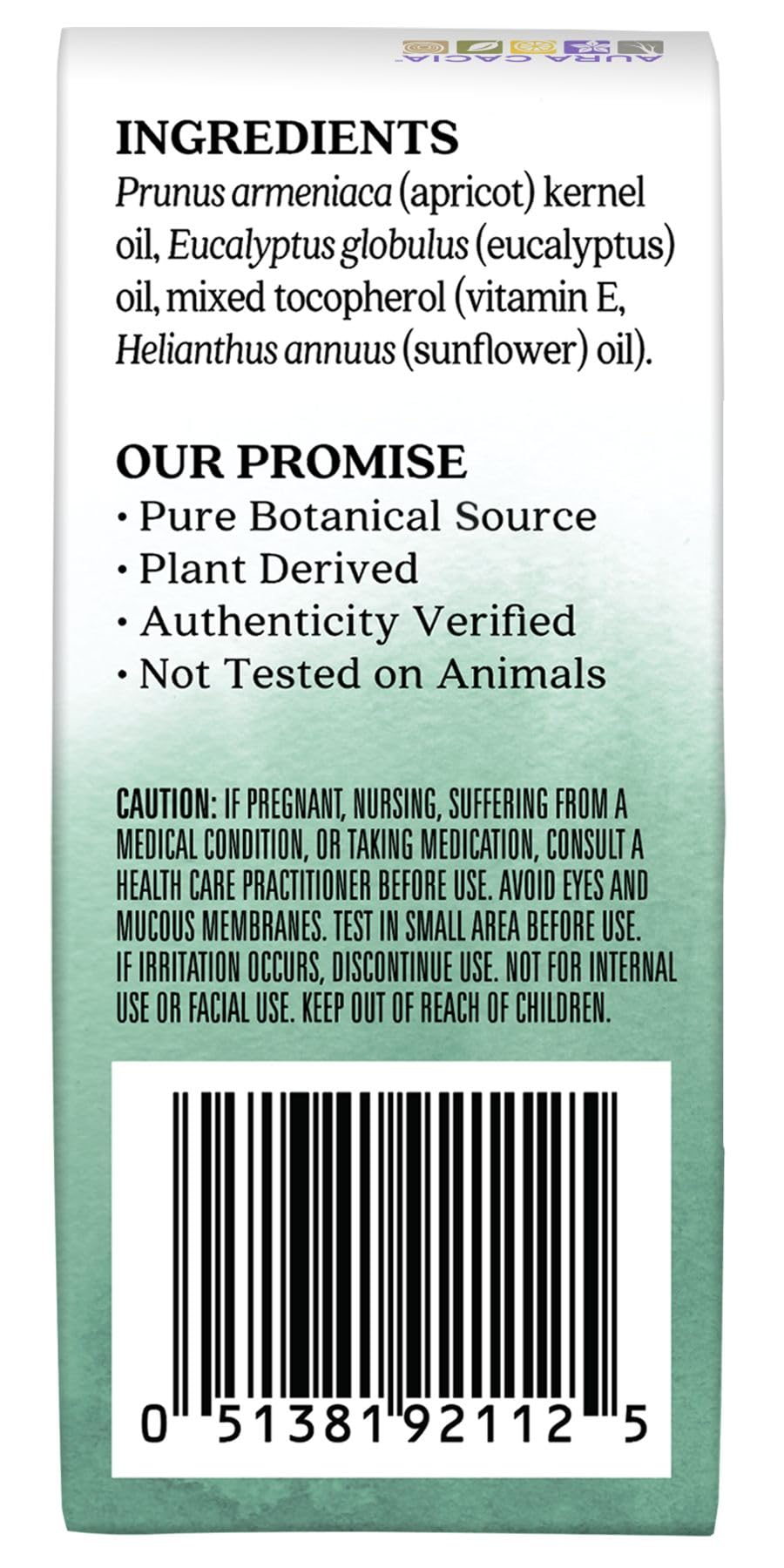 Prunus armeniaca (apricot) kernel oil, Eucalyptus globulus (eucalyptus) oil, tocopherol (vitamin E)