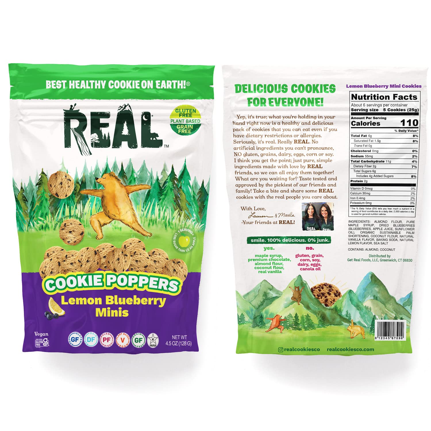 REAL Lemon Blueberry Mini Cookie Poppers – Bite-sized Gluten Free Semi Soft Baked Cookies – Dairy Free, Vegan, Kosher, Paleo – Delicious Mini Lemon Blueberry Cookies (4.5 oz)
