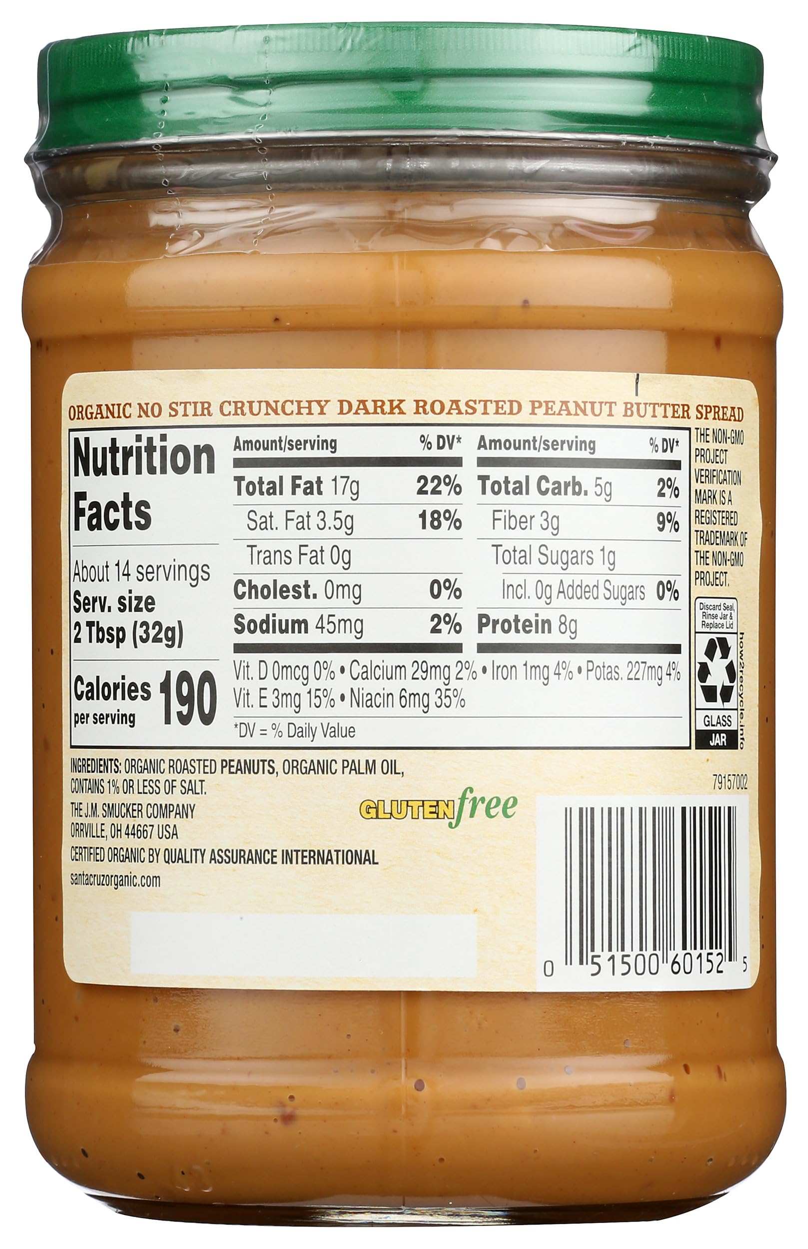 SANTA CRUZ ORGANIC Organic No Stir Dark Roast Crunchy Peanut Butter Spread, 16 OZ