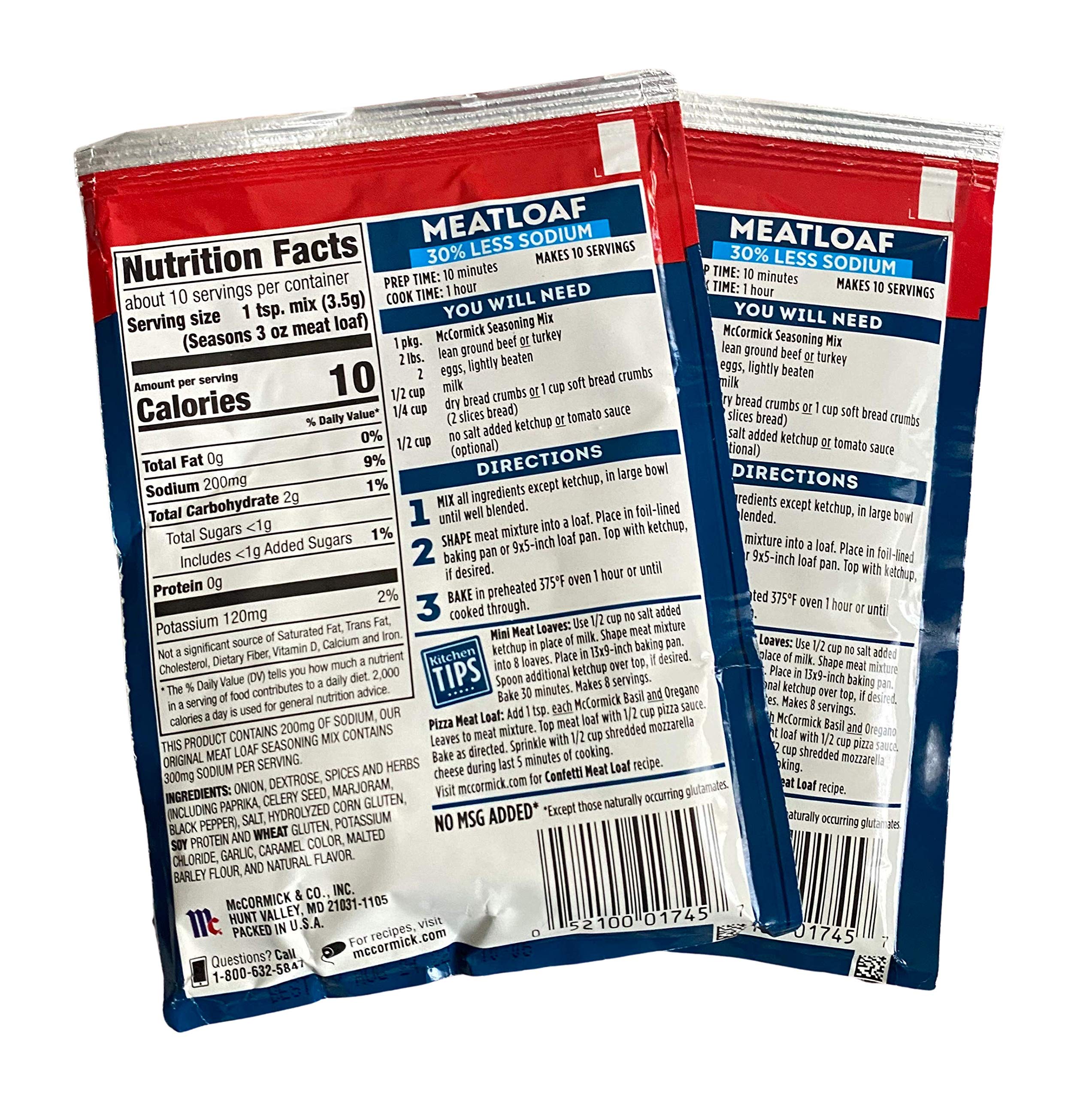 McCormick Meat Loaf 30% Less Sodium Seasoning Mix (Pack of 2) 1.25 oz Packets