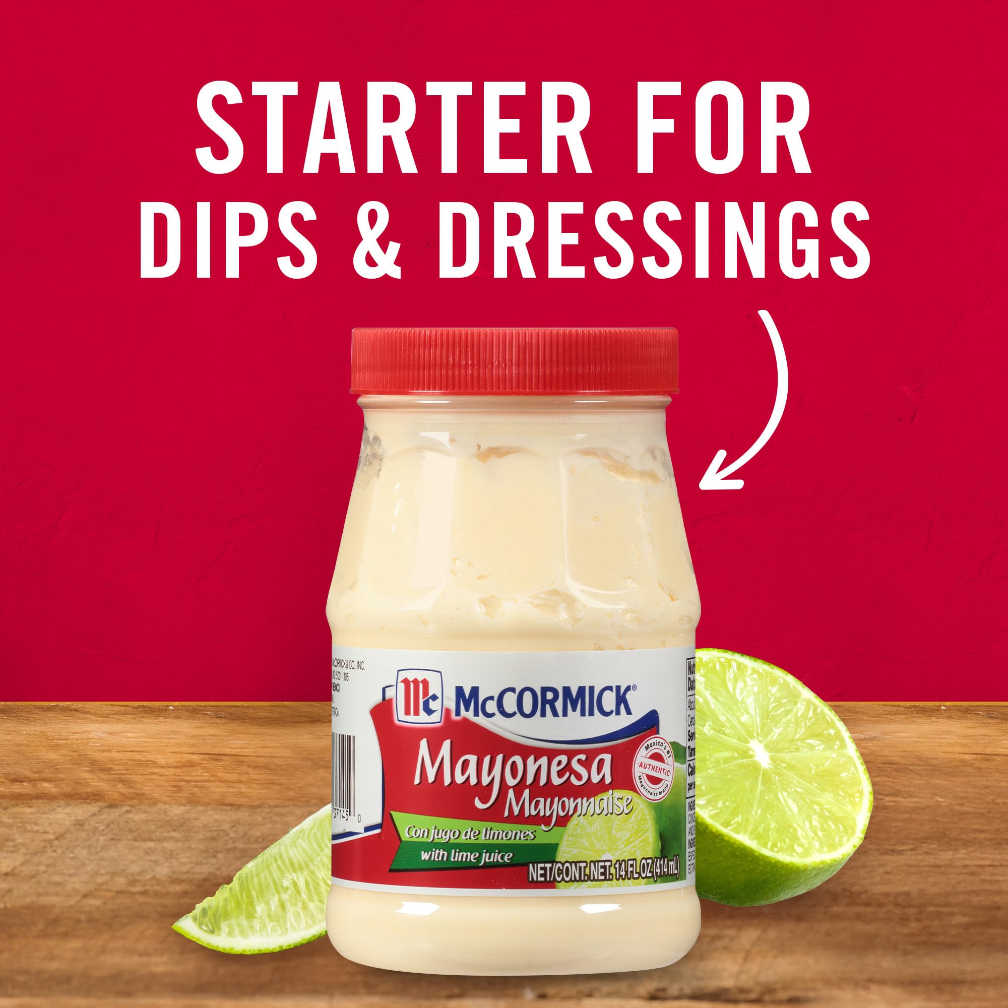 McCormick Mayonnaise with Lime Juice, The #1 brand of mayonnaise in Mexico, makes every dish you prepare for your family even more delicious with traditional Mexican flavor. Its creamy texture and tangy lime flavor liven up tacos, elotes, burritos, tortas and so much more. McCormick Mayonnaise is made in Mexico and enjoyed by all for the taste that it brings to tacos, tamales, burritos, and quesadillas. You can spread Mayonnaise on sandwich favorites like roast turkey, grilled chicken, ham cheese, roast beef, burgers, and even pulled pork. It can do everything regular mayo does but with an extra zing of lime juice. Stir into potato salad, tuna salad, or chicken salad to add a unique flavor. It even makes a cool and zesty spread for corn-on-the-cob straight off the grill. Pongale lo sabroso!