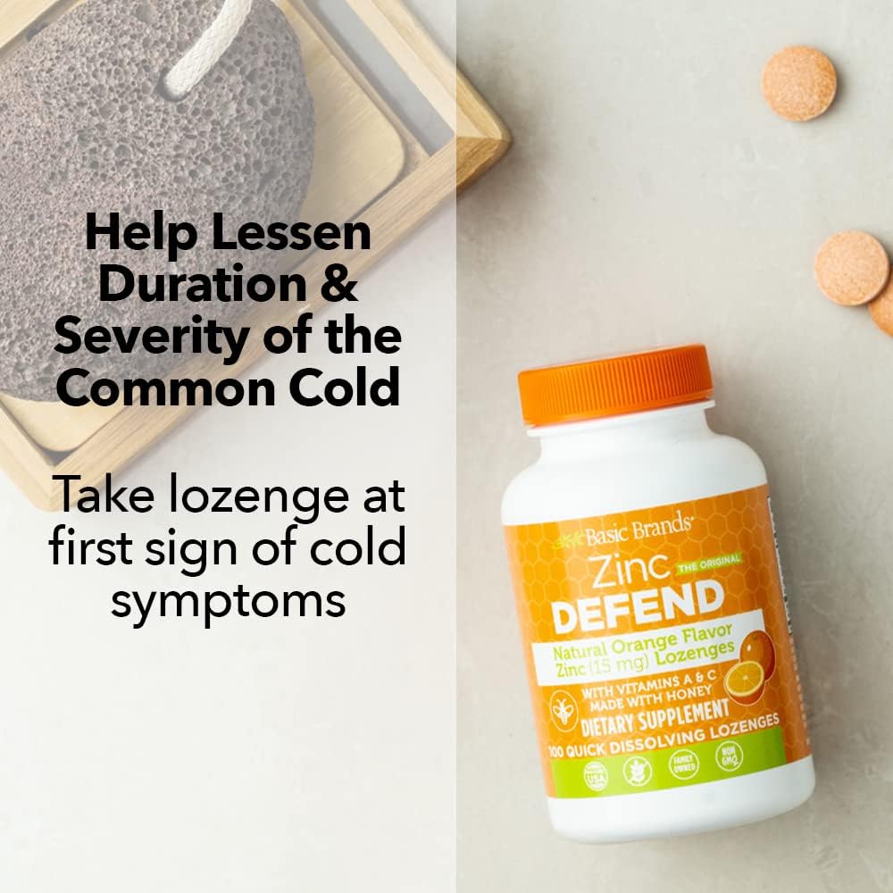 Basic Brands Zinc Lozenges, 100 Count, Orange