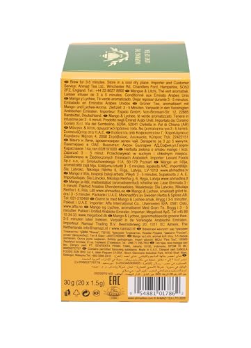 Ahmad Tea Green Tea, Mango & Lychee Teabags, 20 ct (Pack of 1) - Caffeinated & Sugar-Free