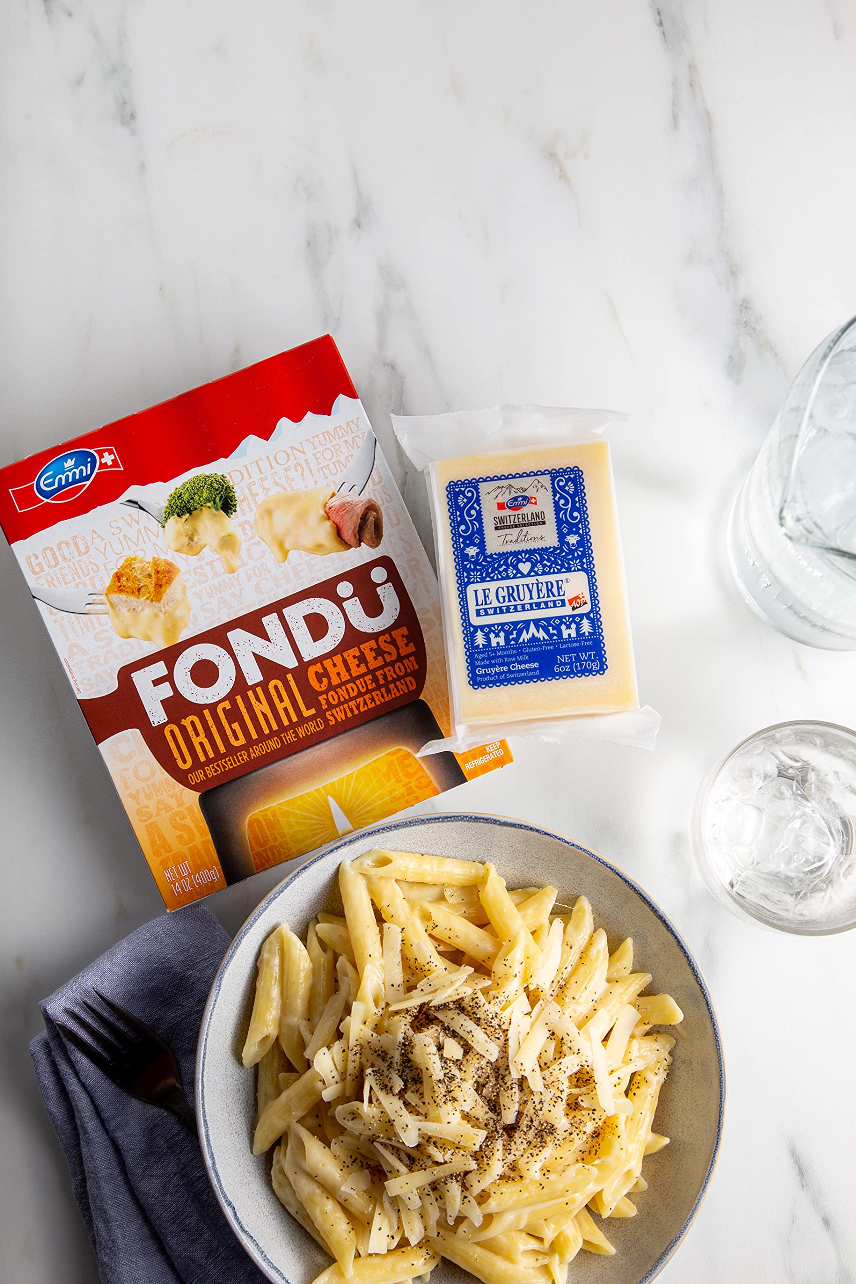 Emmi Swiss fondue. Imported from Switzerland. Heat and serve.