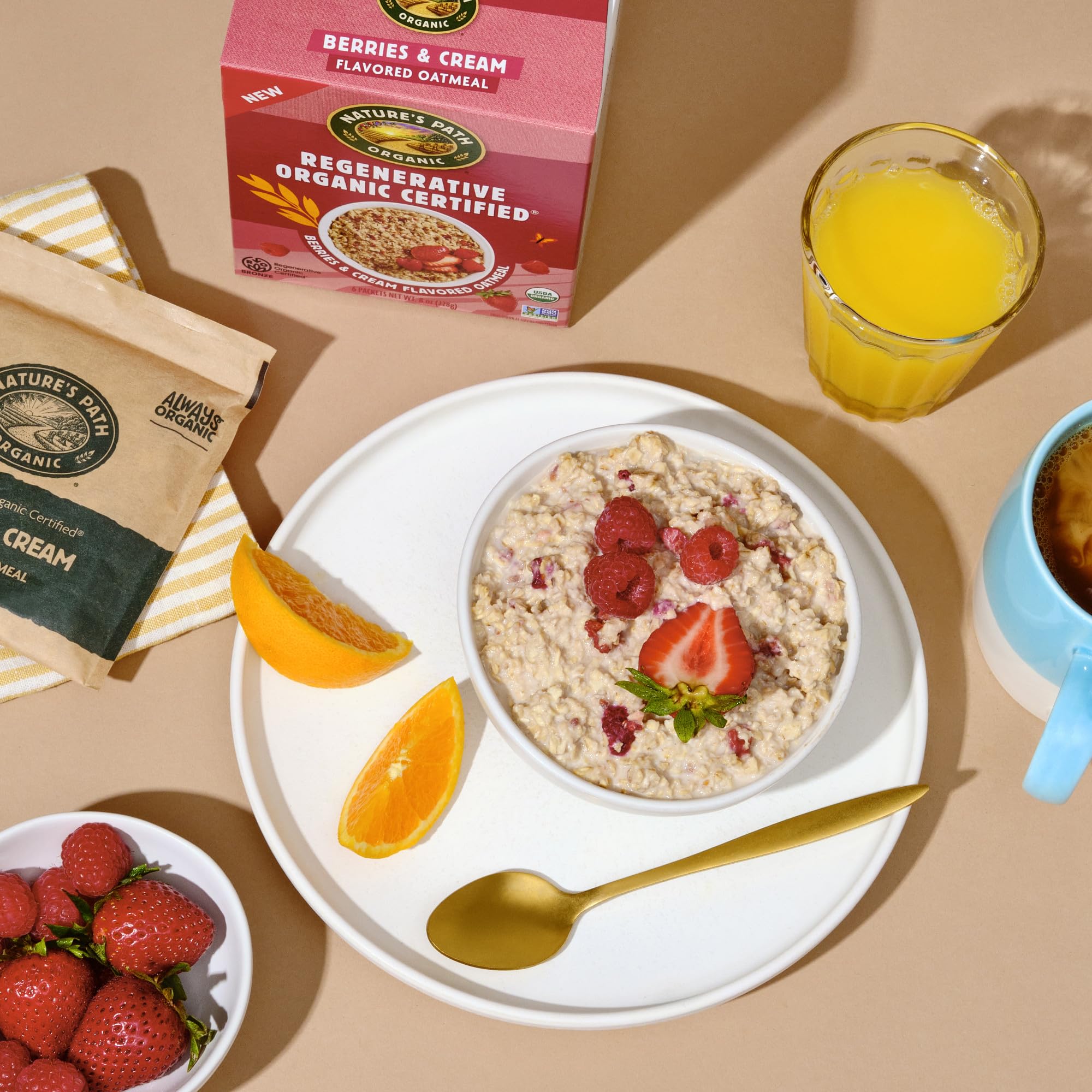 Nature's Path Organic Regenerative Organic Certified Berries & Cream Instant Oatmeal, 8 oz (Pack of 1), Non-GMO