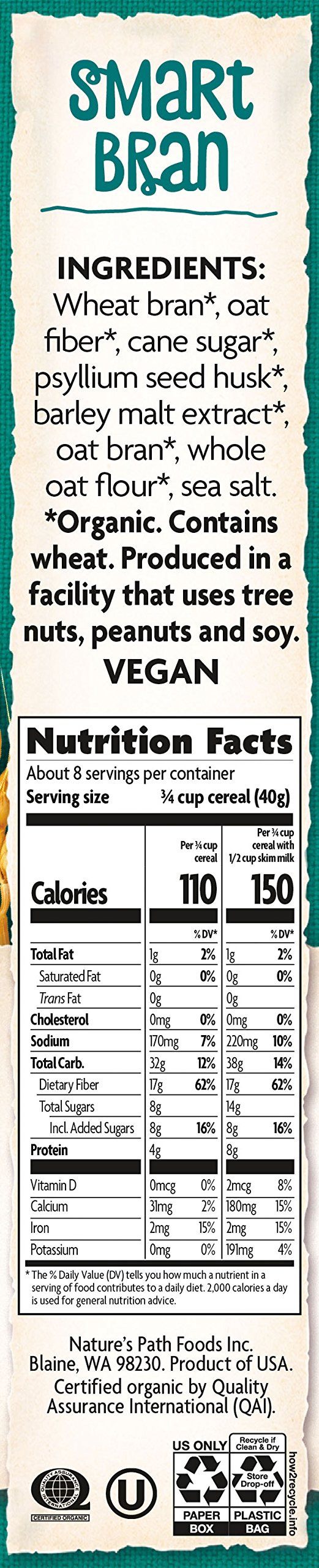 Nature's Path Organic Smart Bran Cereal, 10.60-Ounce Box