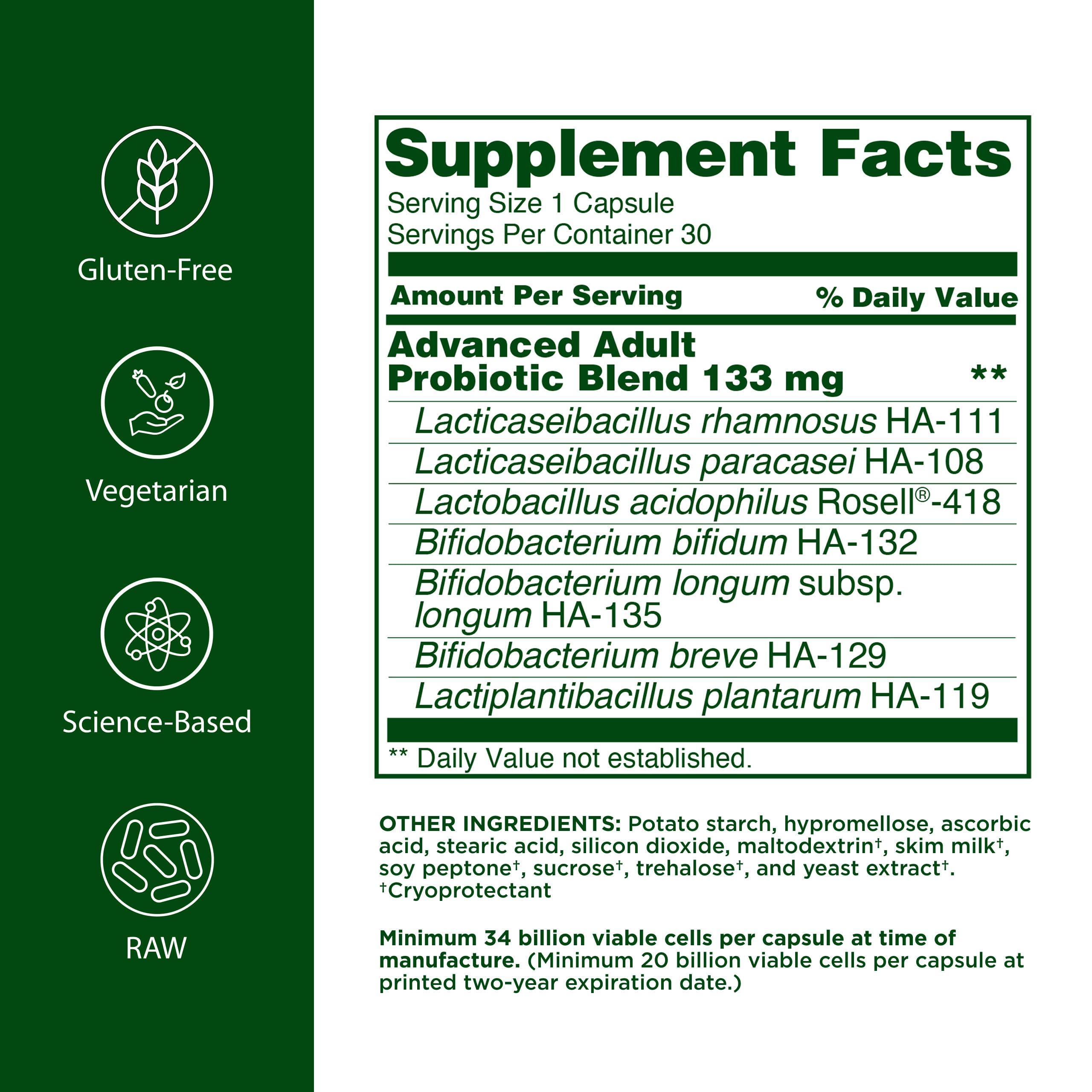 Flora - Advanced Adult's Blend Probiotic, Seven Senior-Specific Strains, Gluten Free, Raw Probiotic with 34 Billion Cells, 30 Capsules