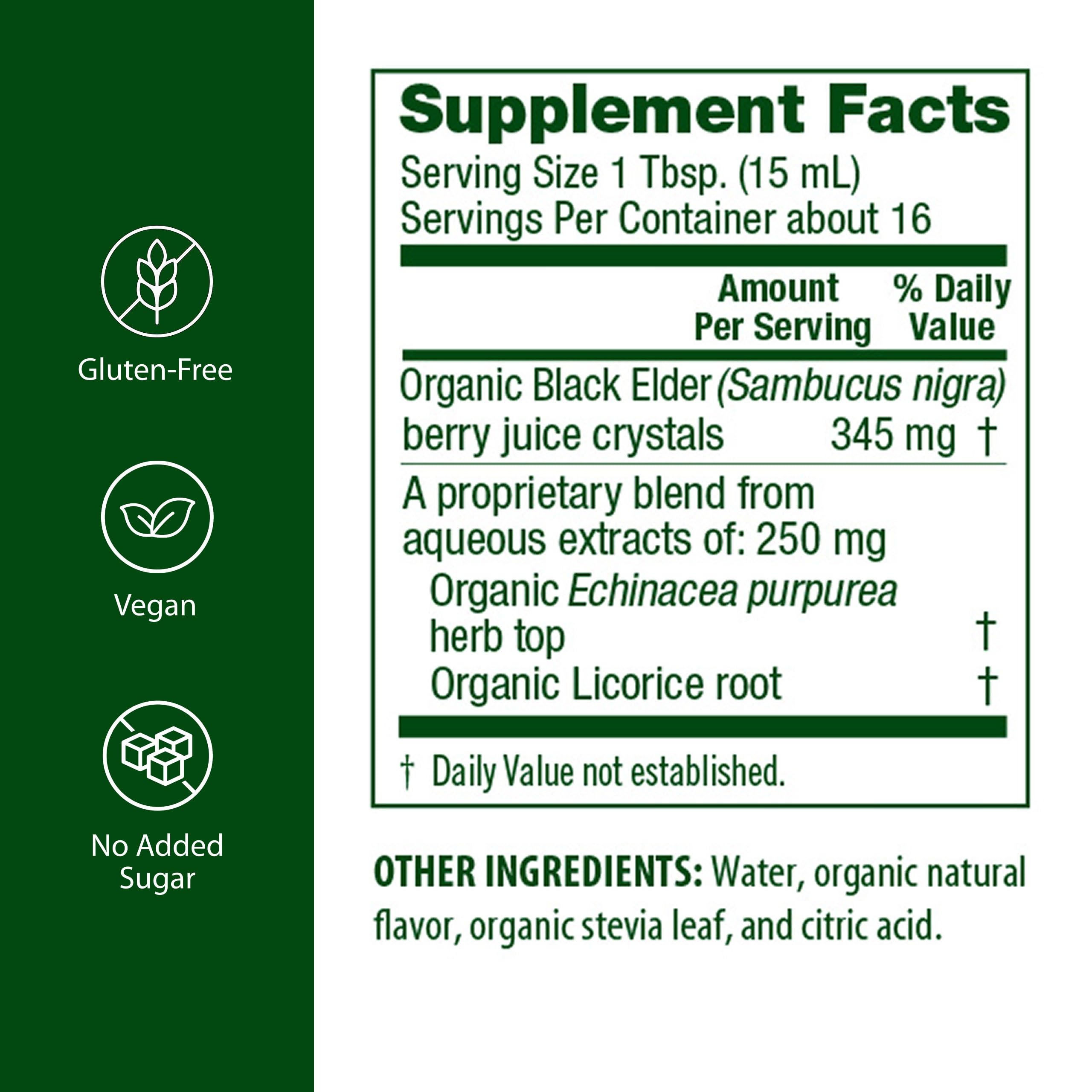 Flora’s Elderberry+ is a delicious, organic blend of elderberry, echinacea, and licorice. It can be taken daily to promote immunity system or at the onset of symptoms. Enjoy the delicious, natural flavor of Elderberry+ with no added sugar. Just mix with water or your favorite beverage for an immune-boosting punch.