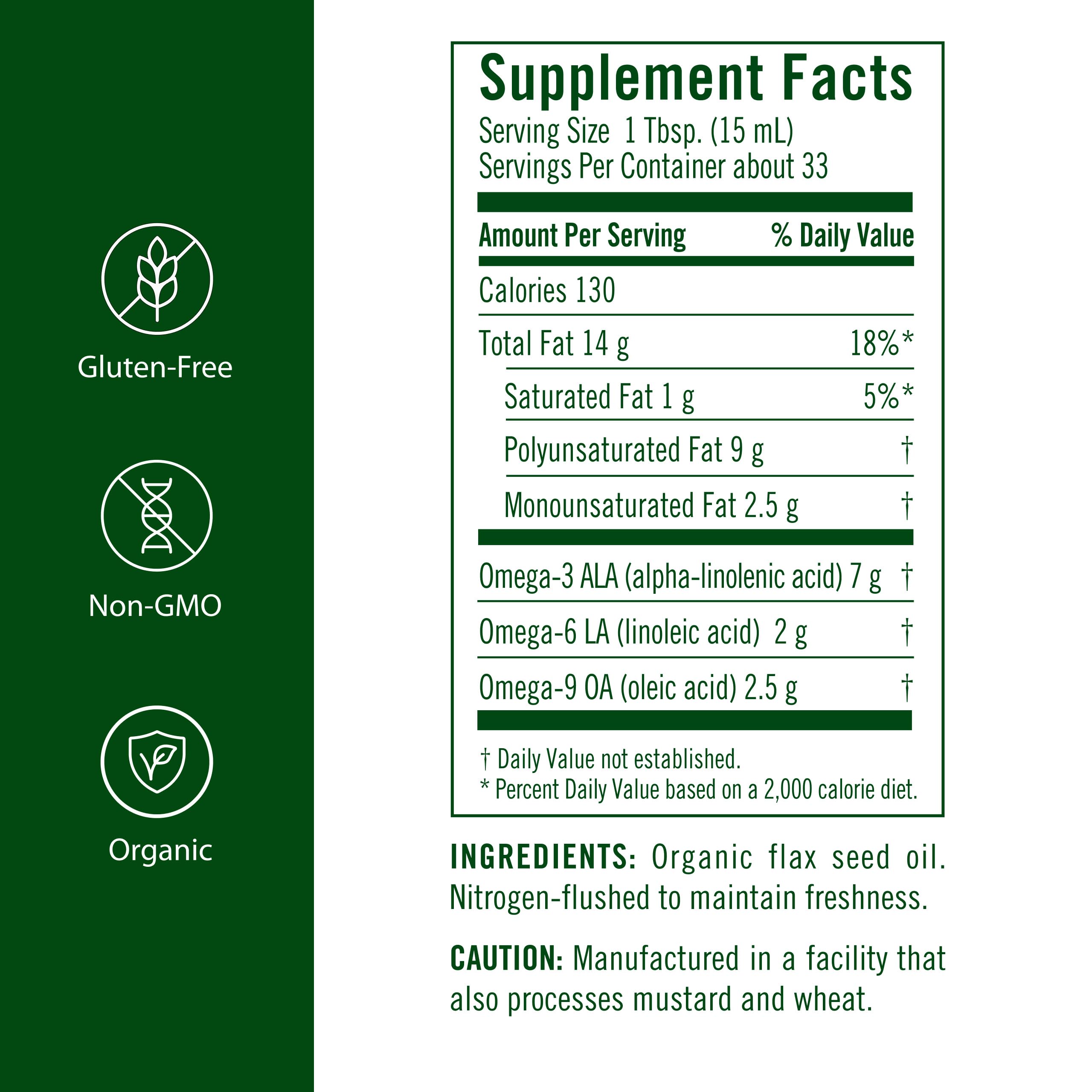Flora Certified Organic Flax Seed Oil - Cold Pressed & Unrefined - Non-GMO, Gluten-Free, Kosher Omega Flax Oil Blend - Essential Fatty Acids for Wellness - Amber Glass Bottle - 17 oz