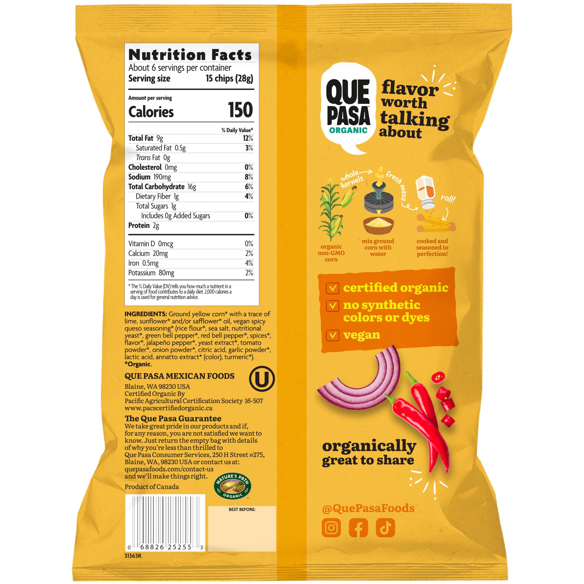 Que Pasa Organic Spicy Queso Tortilla Chips, 6.5 Ounce (Pack of 1)