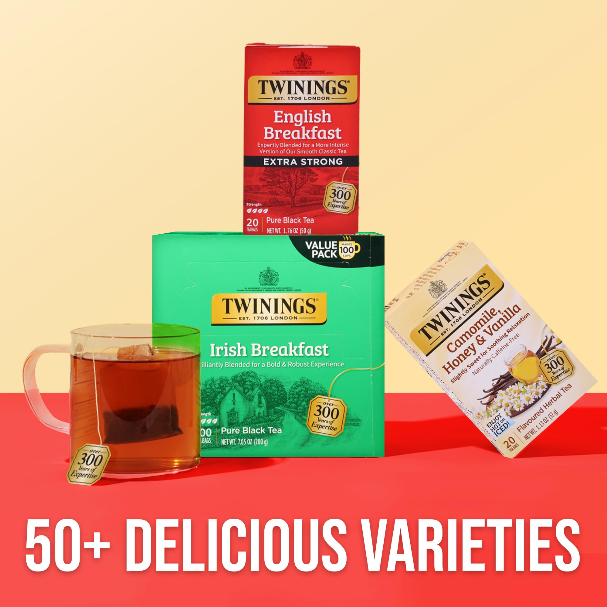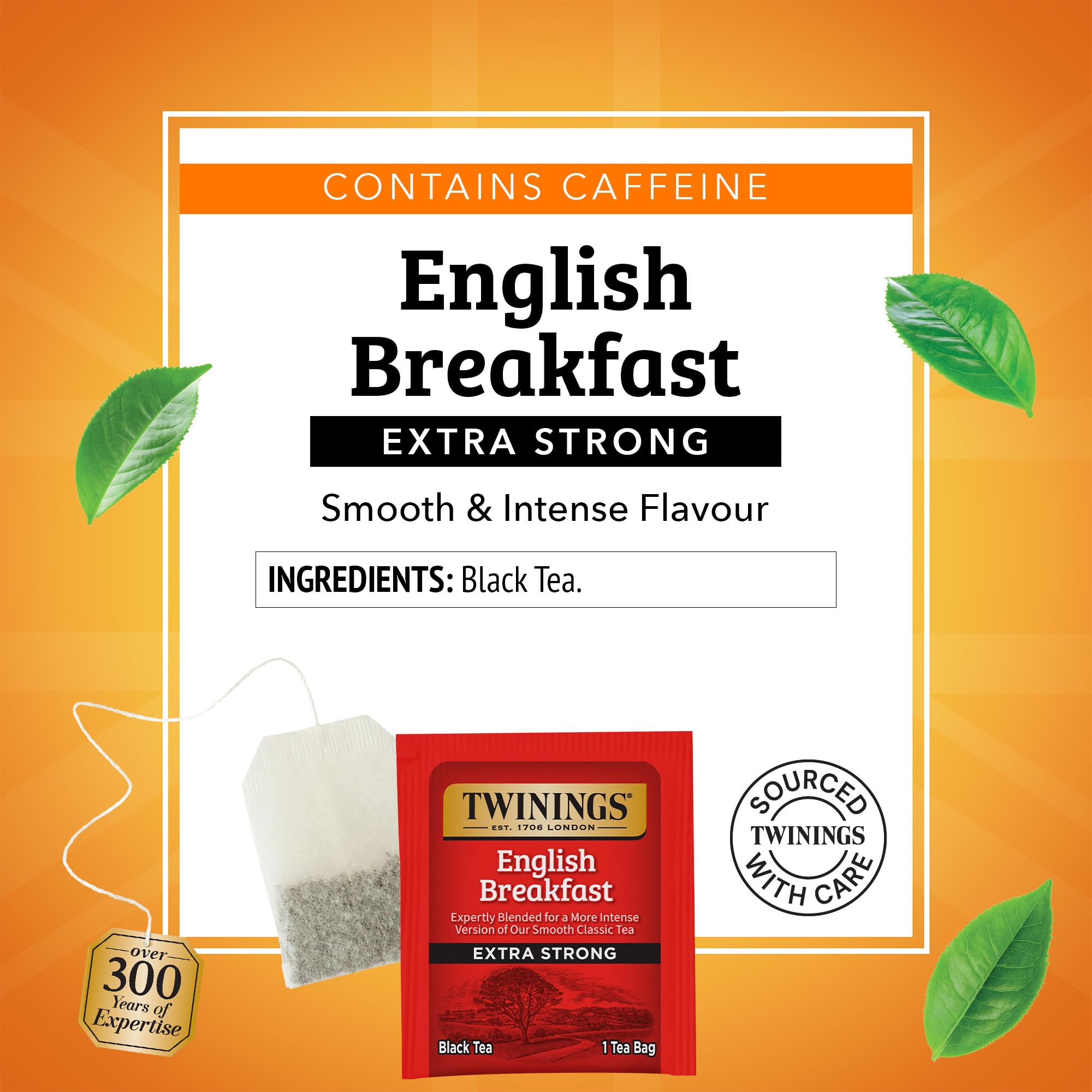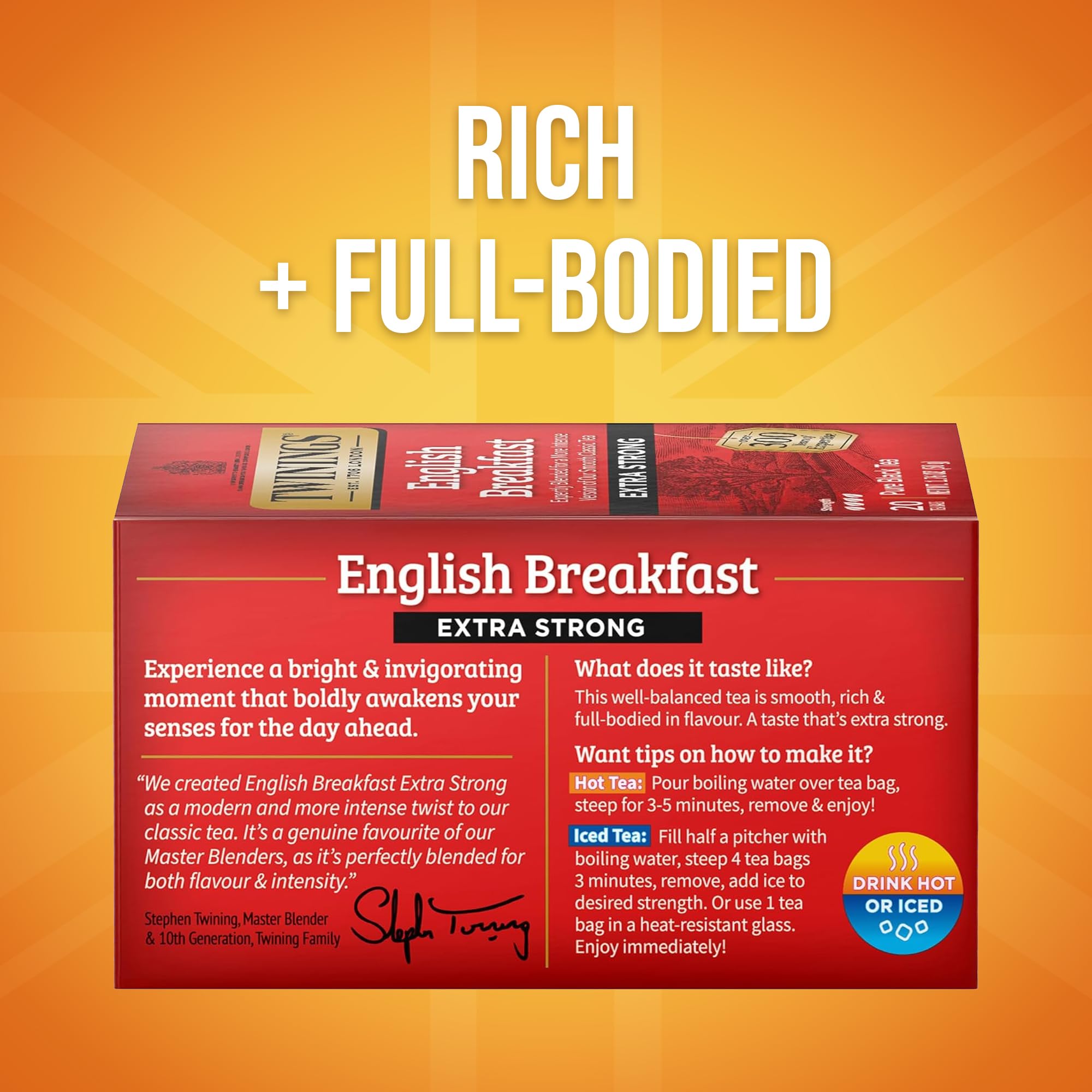 Twinings English Breakfast Extra Strong Black Tea Individually Wrapped Bags, 20 Count (Pack of 1), Robust, Caffeinated, Enjoy Hot or Iced, 20 Teabags