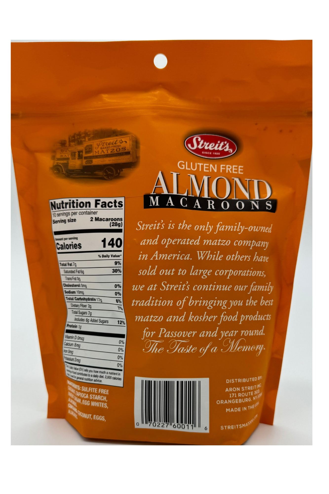 Upc: 070227-600116 macaroons,almond 12/10 oz by streit's kosher; specialty product; natural or organic ingredients