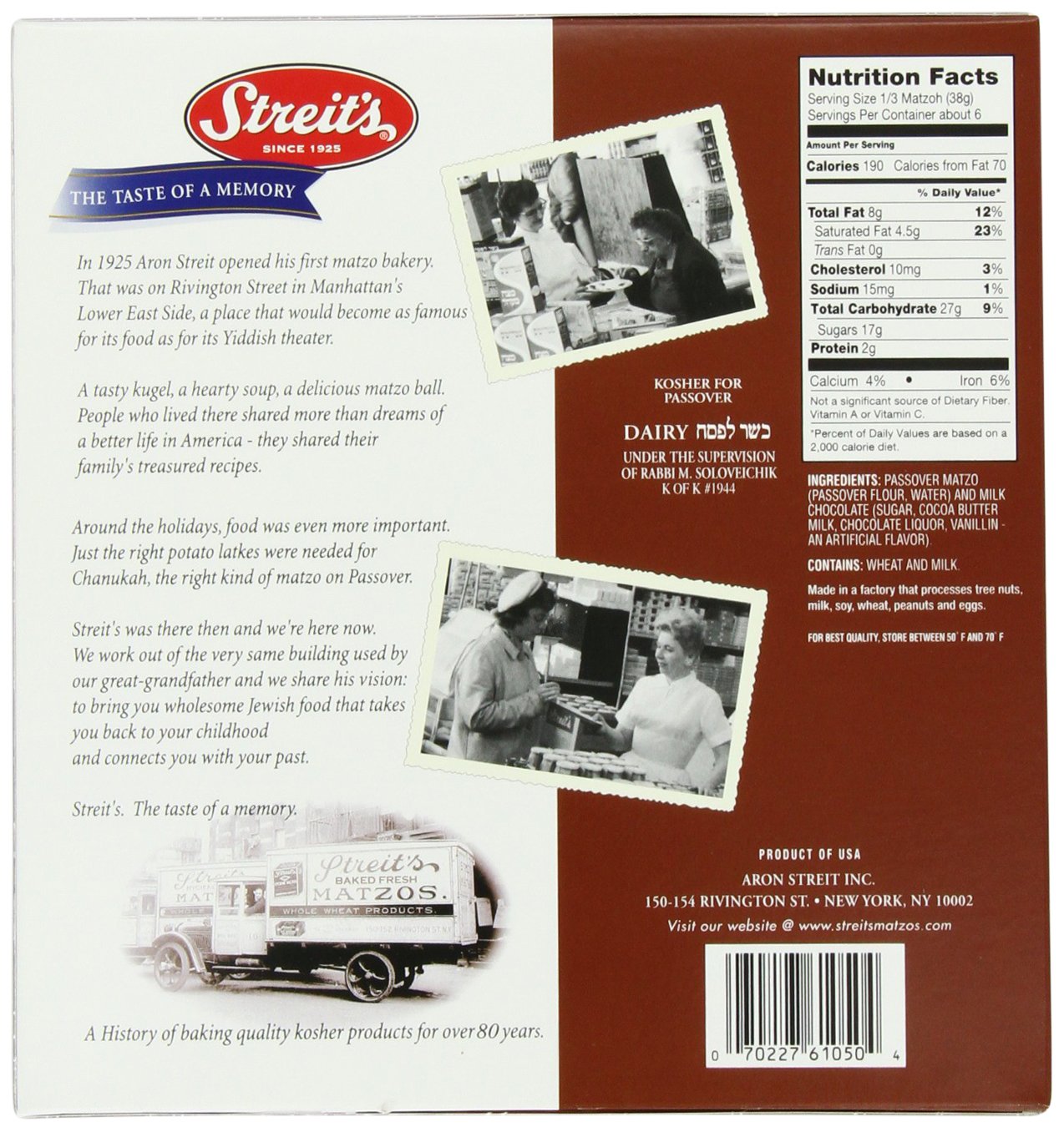Aron Streit's has been making fine kosher foods for Passover since 1925. Some of our Passover Products include: Matzo, Noodles, Soup Mixes, Cup a Soup, Assorted Matzo Products, Chanukah Products, Specialty Products and More.