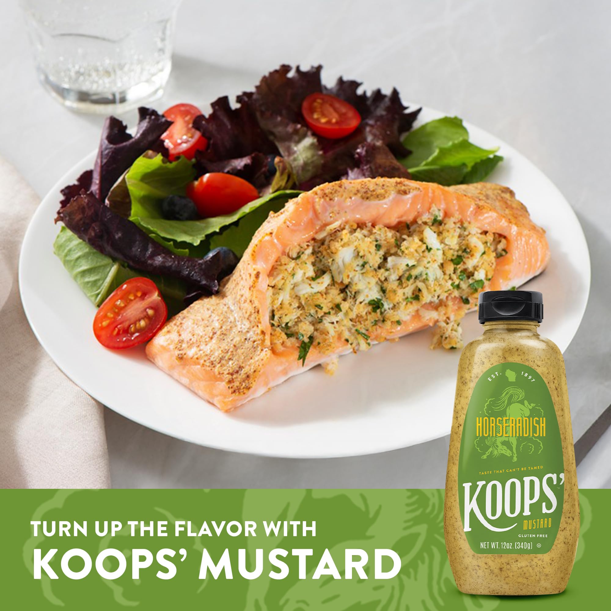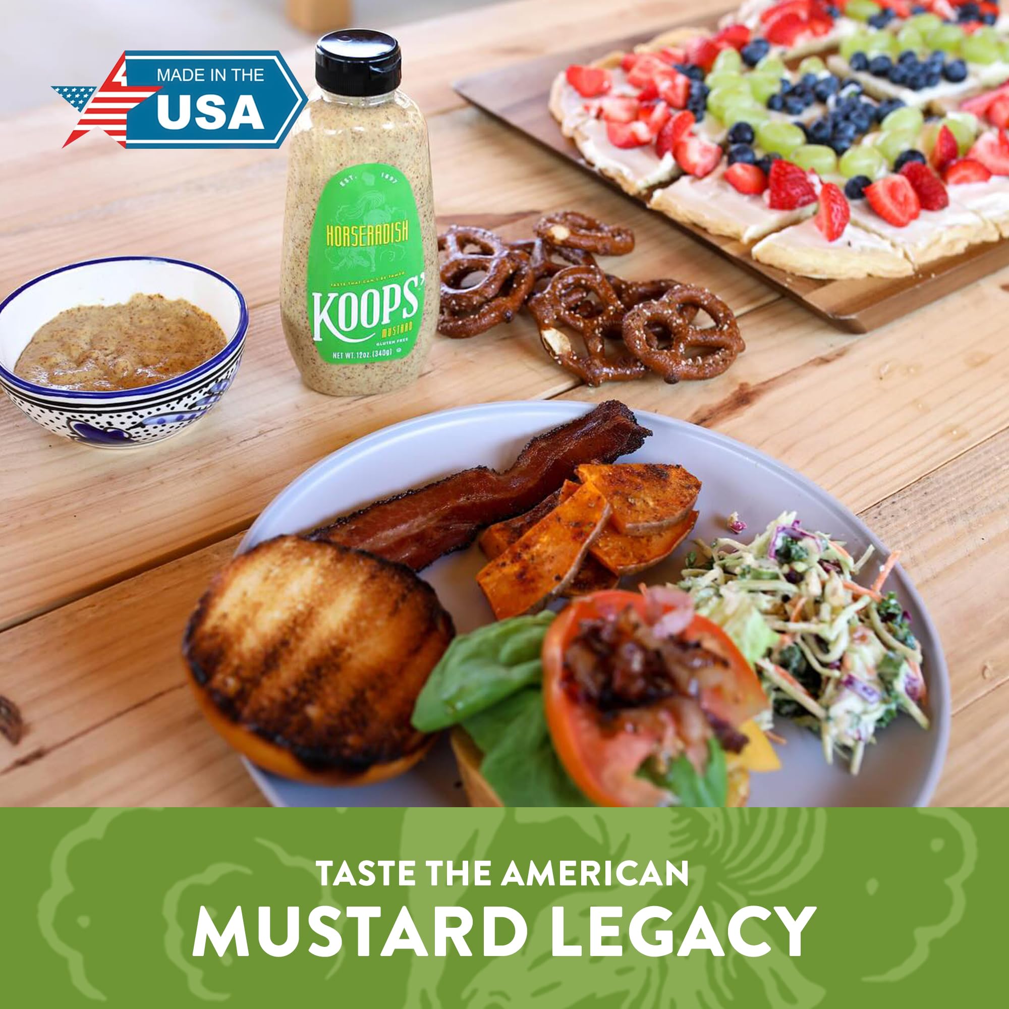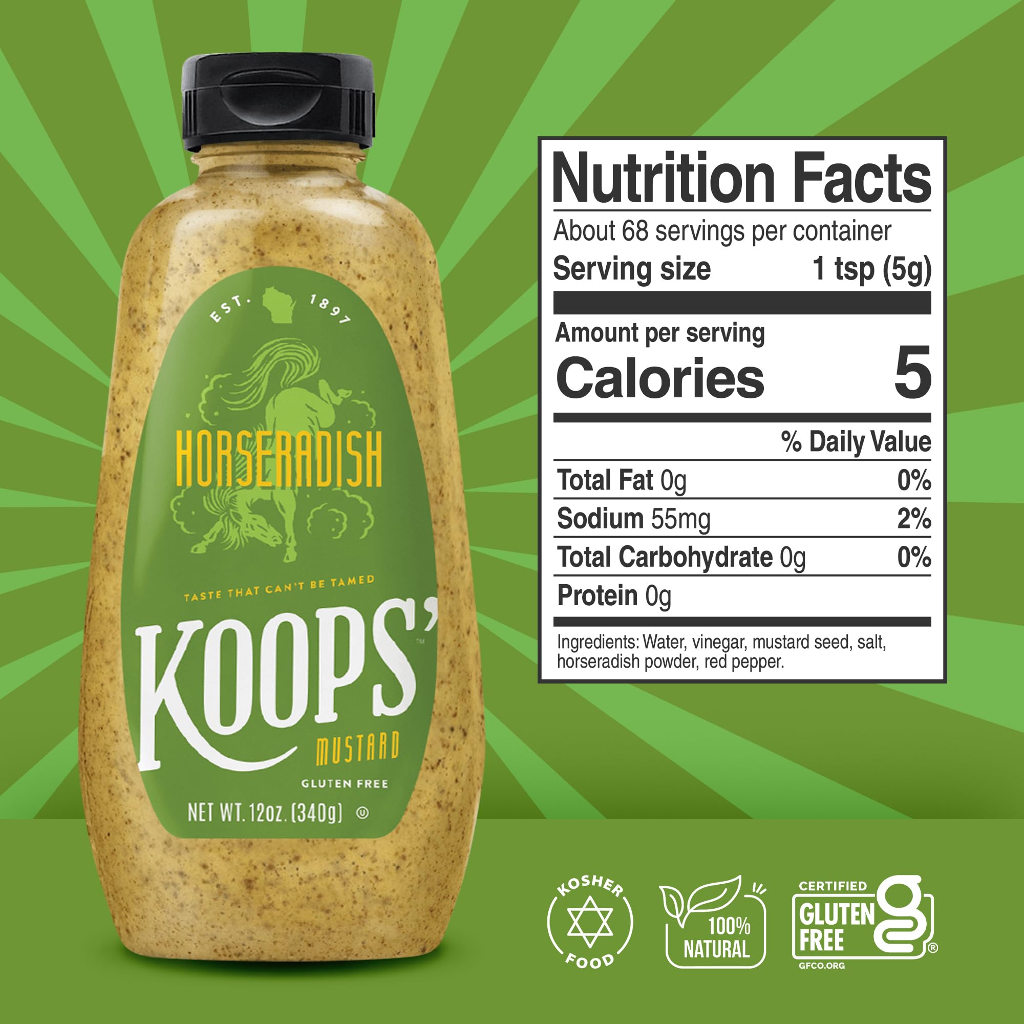 Koops' Horseradish Mustard – Bold and Zesty Horseradish Sauce, Gluten-Free, Kosher, Made in USA, From Quality Mustard Seeds – 12 Oz, Pack of 1