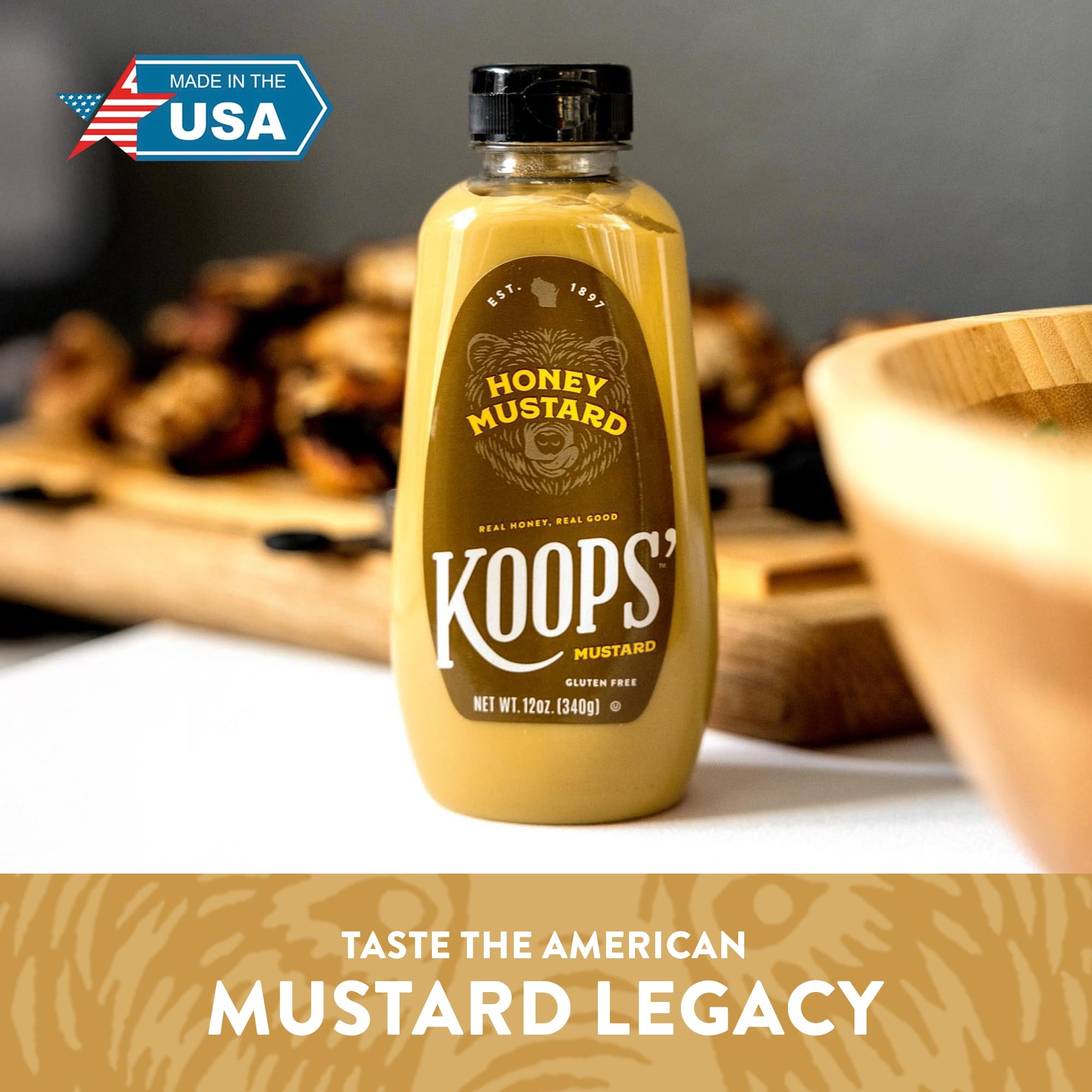 Koops' Honey Mustard – Gourmet Mustard, Gluten-Free, Kosher, Made in USA, From Quality Mustard Seeds, Honey Mustard Sauce – 12 Oz, Pack of 1