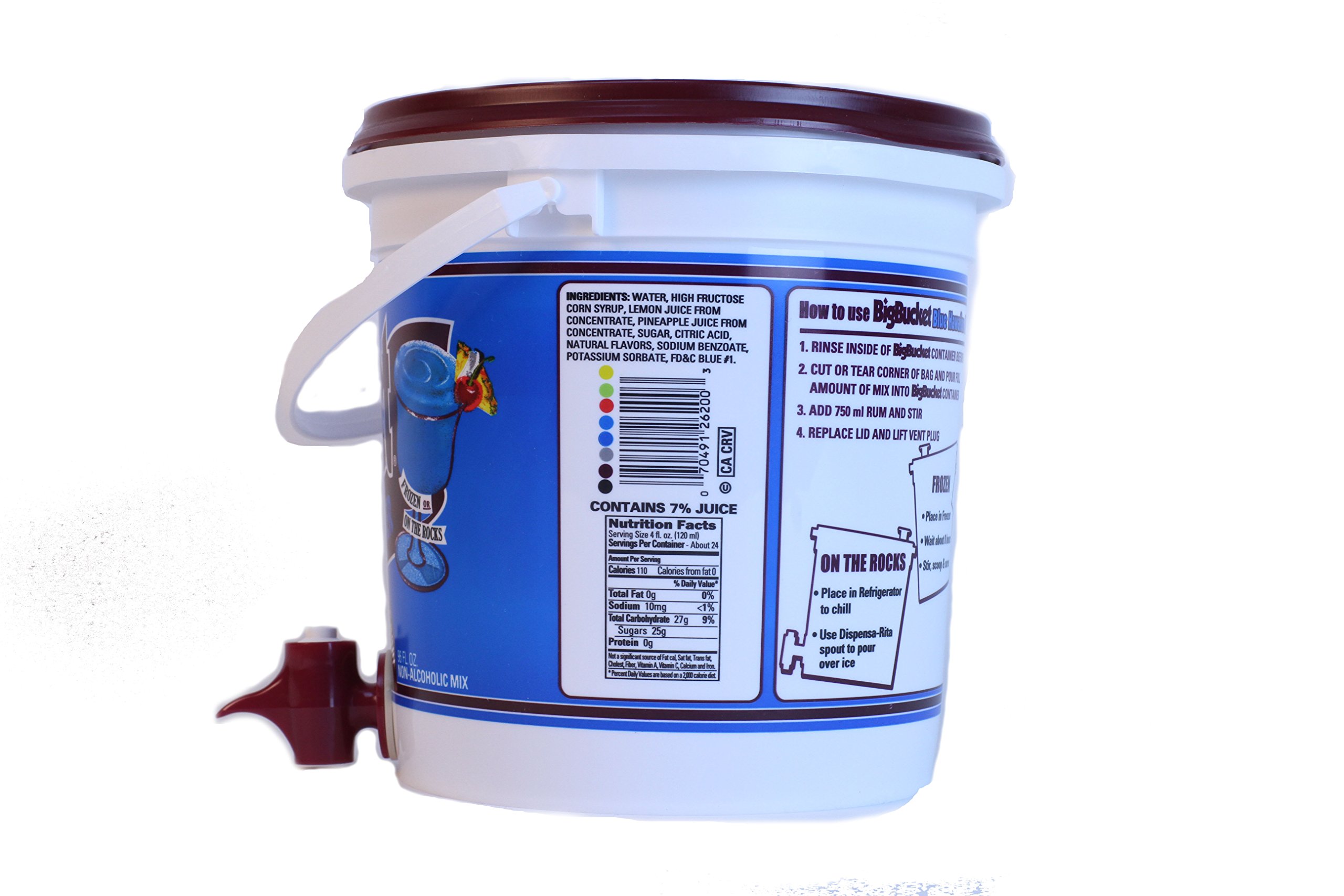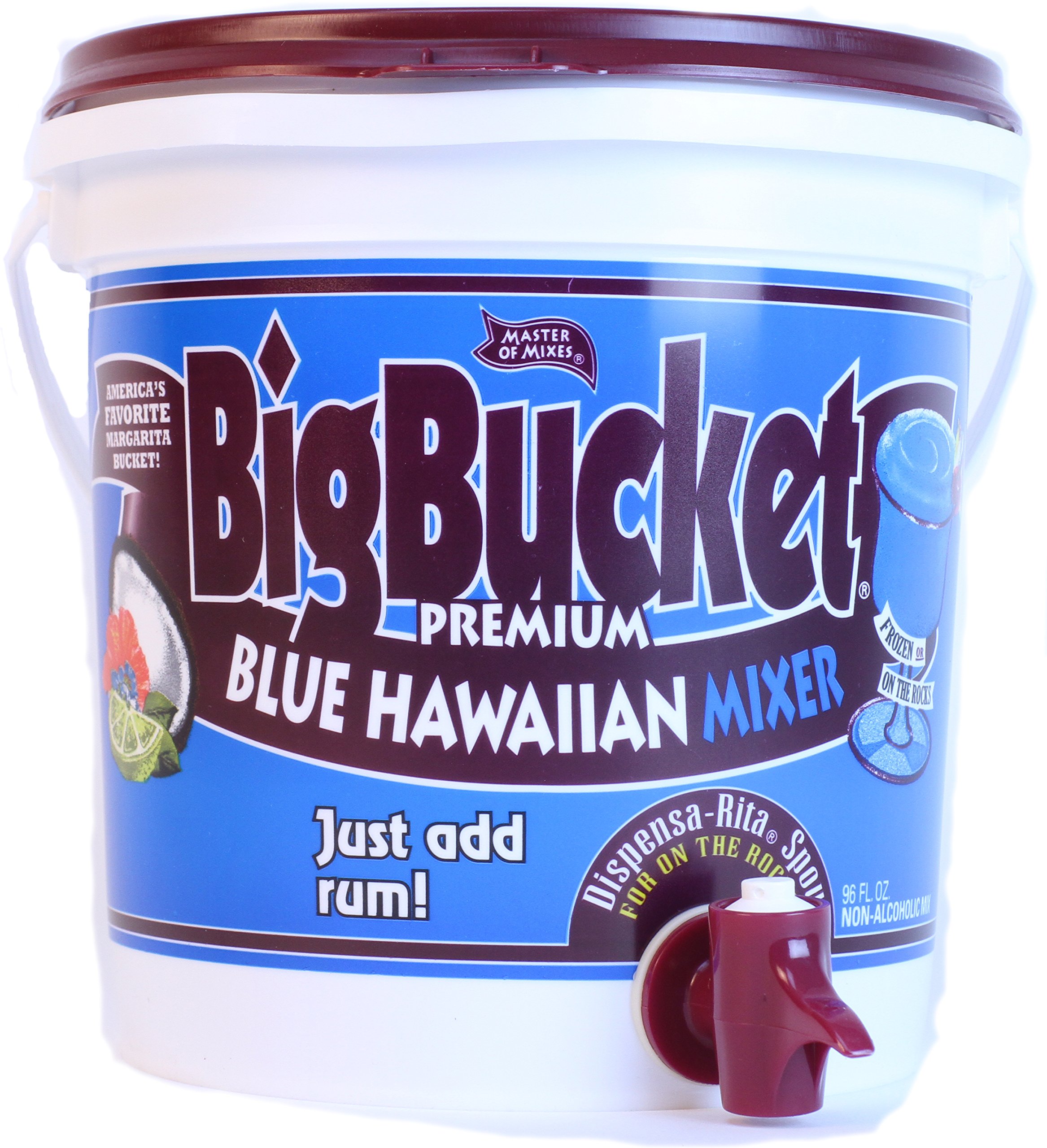 Big Bucket, 96 OZ, Low Profile Blue Hawaiian Margarita Mix, Exclusive Dispense Spout, Place Container In The Freezer For A Frozen Margarita, Just Add Tequila, Contains Real Lemon & Lime Juice & Natural Fruit Oils.