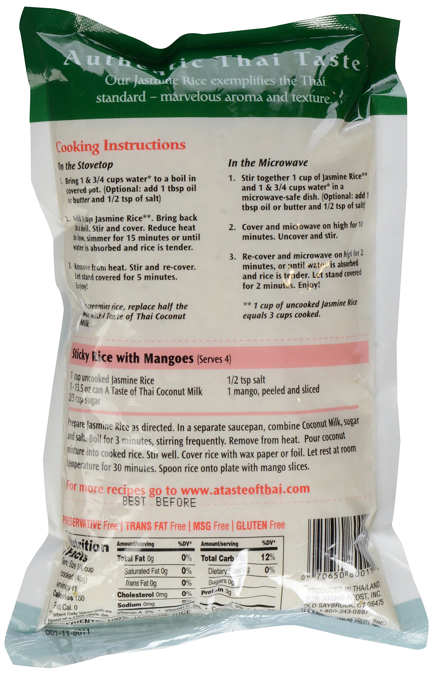 A Taste of Thai Instant White Jasmine Rice - Authentic Thai White Rice Organic | Gluten-Free, Non-GMO Instant Heat & Eat- 1 Pack, 17.6 oz