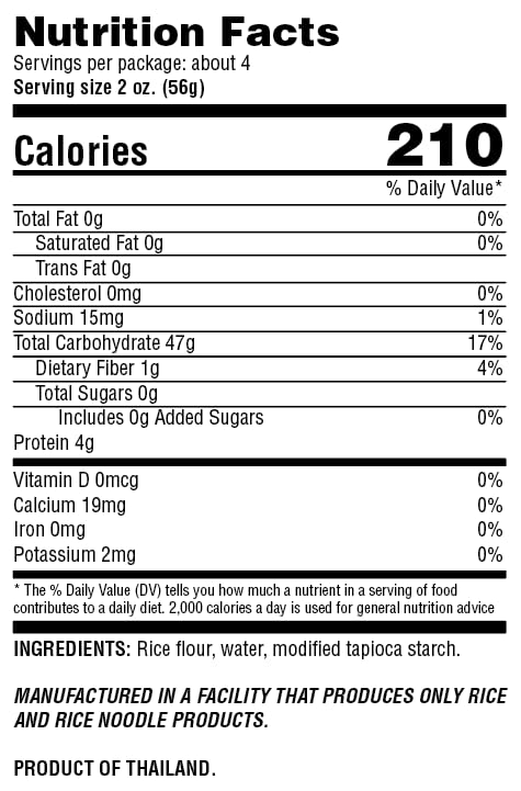 Purity defines our approach to ingredients. With only rice flour and water, these noodles are naturally gluten-free and free from everything you don't want – no preservatives, artificial anything, trans fats, MSG, or GMOs. This clean ingredient list makes them suitable for various dietary requirements while delivering authentic taste and texture.