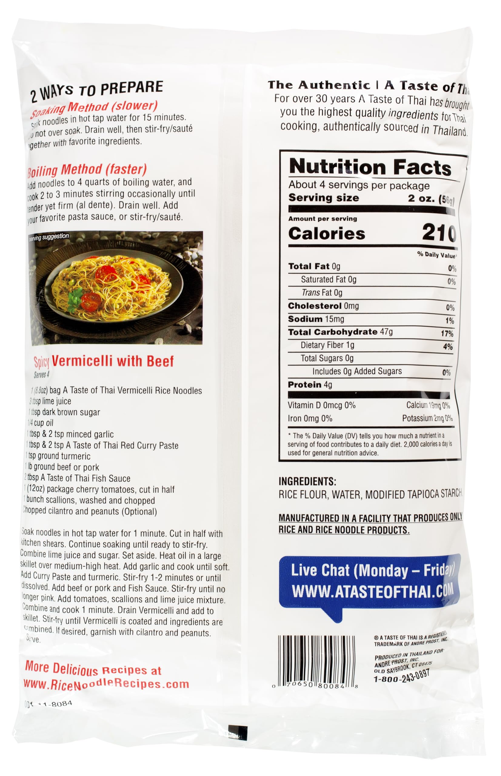 A Taste of Thai Vermicelli Rice Noodles (Angel Hair)| Restaurant-Quality Thai Flavor in Minutes | Vegan, Gluten-Free, Wheat Free, Non-GMO| Perfect for Stir-Fries, Soup & Asian Dishes 8.8 oz, Pack of 1