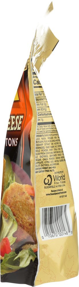Step out of your comfort food and take a trip around the world with Reese Homestyle Garlic and Cheese Croutons. Sourced with international delicacies in mind, Reese finds the highest quality products from different corners of the world, focusing on taste and affordability. Reese Croutons are made from fresh, oven baked bread and then gently toasted to provide the crisp texture that crouton lovers seek. Each crouton is seasoned with just the right blend of herbs and flavorings to ensure a delicious taste sensation. Reese has one goal: to bring the highest quality products from around the world offering artichokes, hearts of palm, capers, seafood, sauces and more, straight to your kitchen. We have been America’s most trusted name in gourmet specialty ingredients for almost a century.