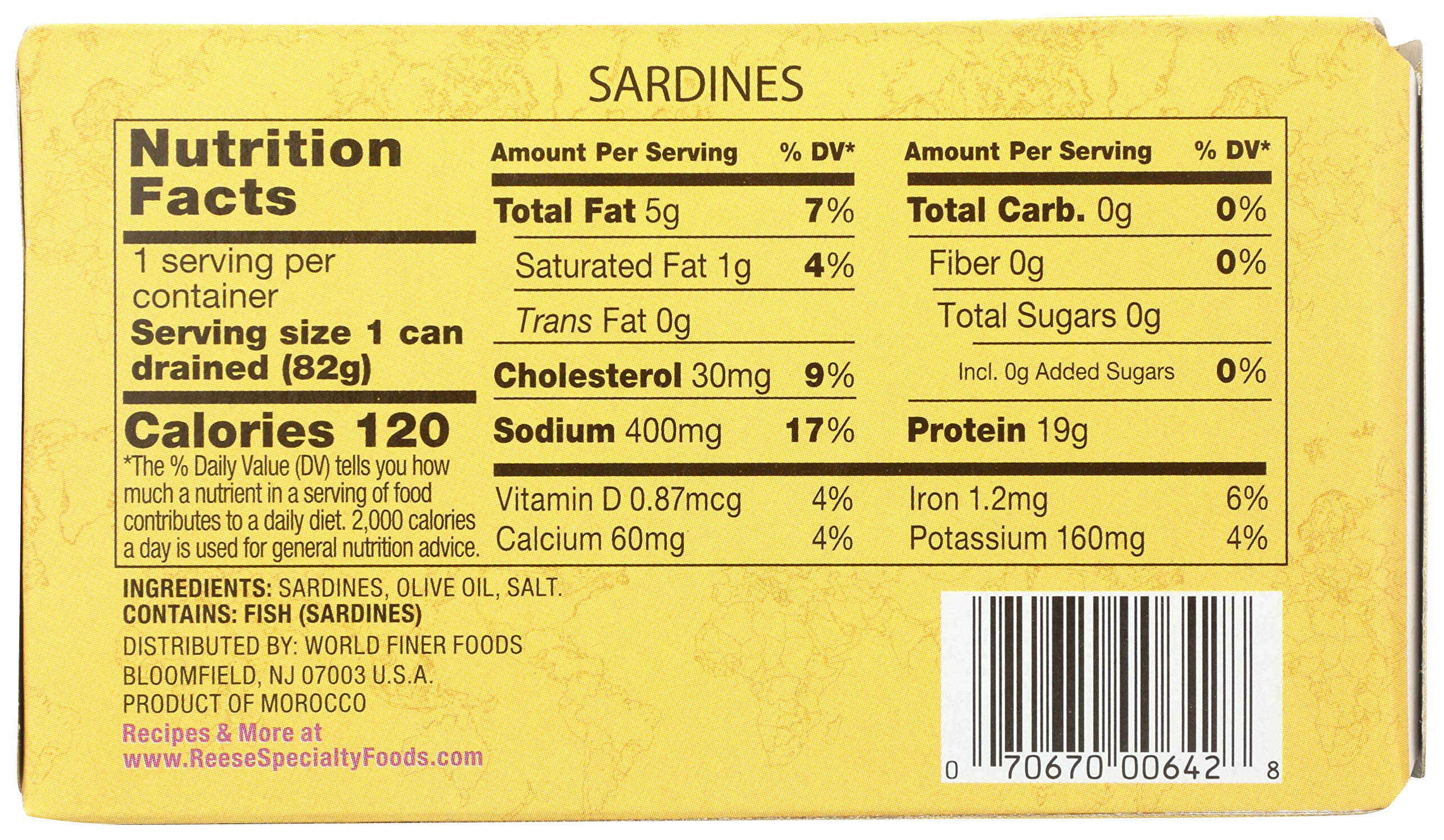 Step out of your comfort food and take a trip around the world with Reese Skinless and Boneless Sardines. Sourced with international delicacies in mind, Reese finds the highest quality products from different corners of the world, focusing on taste and affordability. Reese Plain Sardines have a perfect balance of saltiness and a unique flavor. They are great to add to pasta, pizza or salads. These sardines are skinned and deboned for your convenience. Reese has one goal: to bring the highest quality products from around the world offering artichokes, hearts of palm, capers, seafood, sauces and more, straight to your kitchen. We have been America’s most trusted name in gourmet specialty ingredients for almost a century.