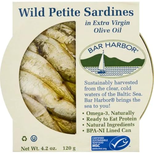 Bar Harbor Wild Petite Sardines in Extra Virgin Olive Oil, 4.2 oz – Wild Caught, Hand-Packed