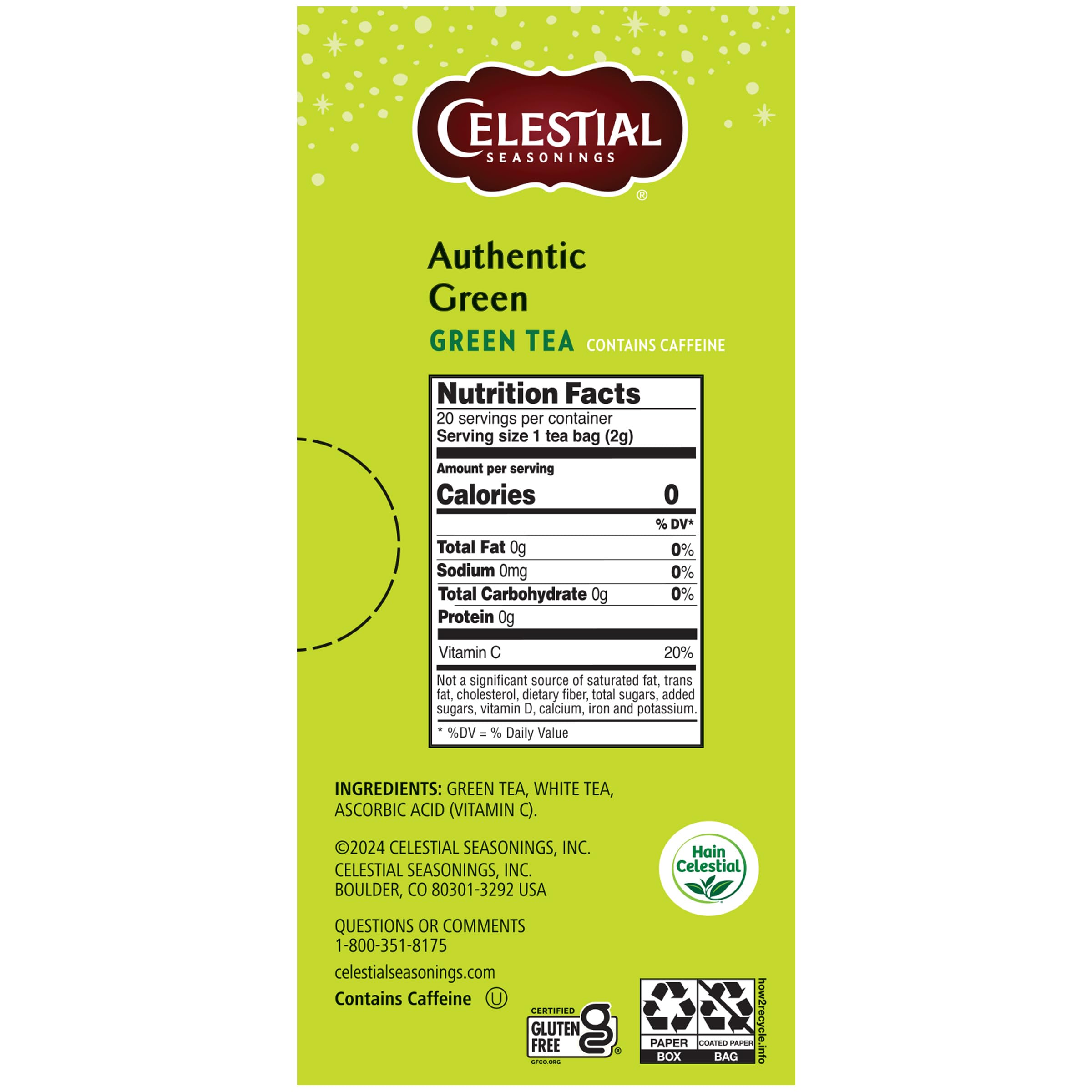 Celestial Seasonings Authentic Green Tea 20 Tea Bags