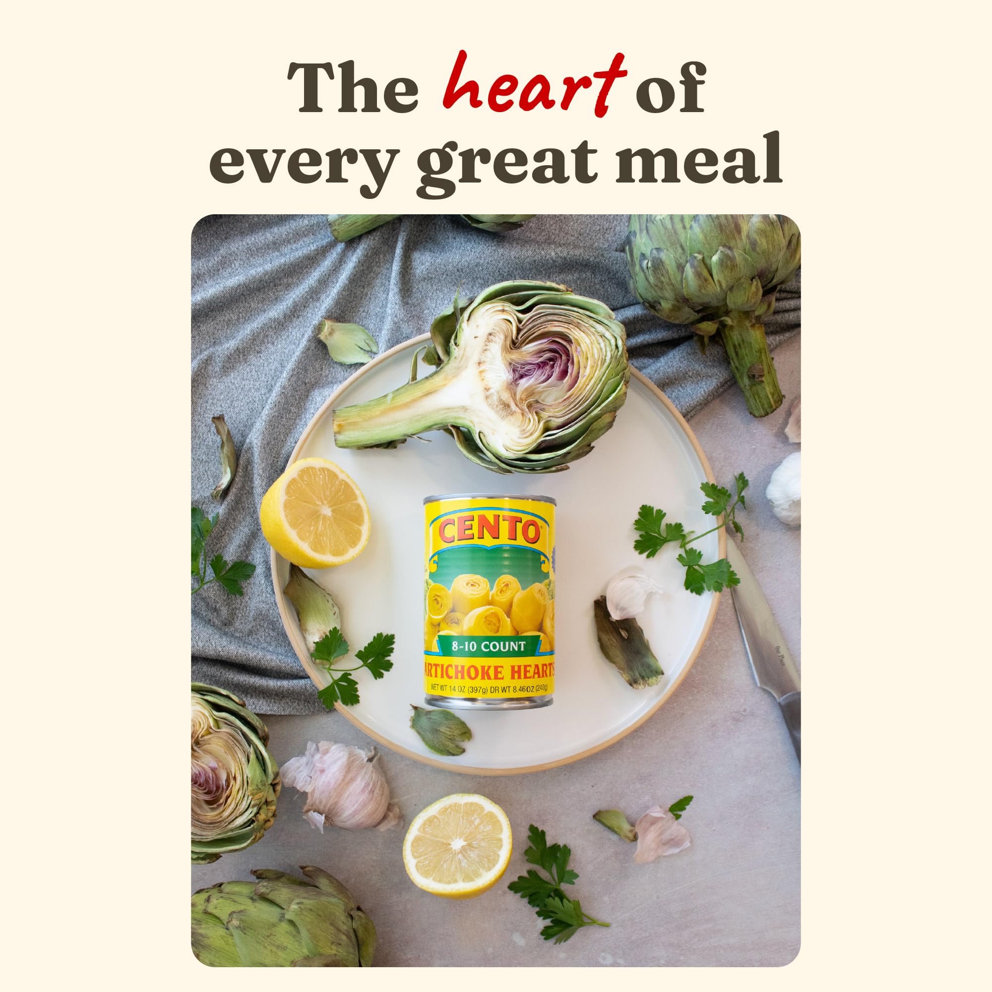Cento Artichoke Hearts In Brine (8 to 10), 14oz Cans (Pack of 12) Ready to Eat Canned Fresh Artichokes for Prepared Salad, Bruschetta, Dip, Charcuterie Spread, Snacks, Antipasto - Non-GMO, Gluten-Free
