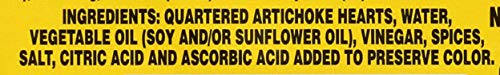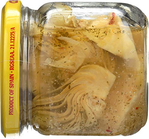Fresh packed. Product of Spain. Ingredients Quartered Artichoke Hearts, Water, Vegetable Oil (Soy and/or Sunflower Oil), Vinegar, Spices, Salt, Citric Acid and Ascorbic Acid Added to Preserve Color.