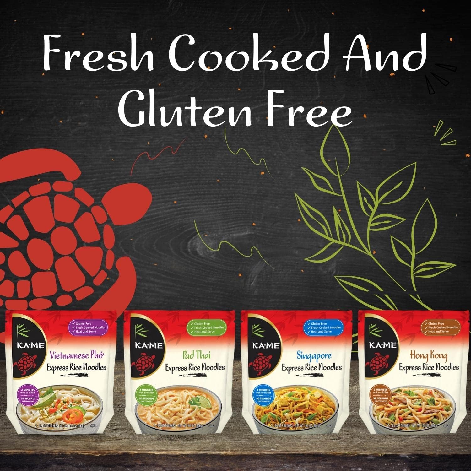 KA-ME Pad Thai Express Rice Noodles 10.6 oz, Authentic Asian Ingredients and Flavors, Gluten-Free, Made of Rice, No Preservatives or MSG, Instant & Microwaveable, Includes Noodles, Sauce, Vegetables and Topping