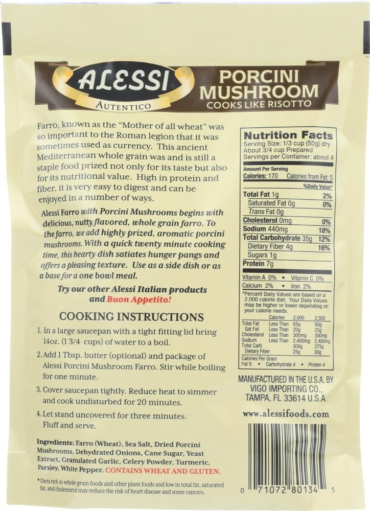 Alessi Autentico, Premium Seasoned Roman Grain Farro, Cooks Like Risotto, Heart Healthy, Easy to Prepare, 7oz (Porcini Mushroom, Pack of 6)