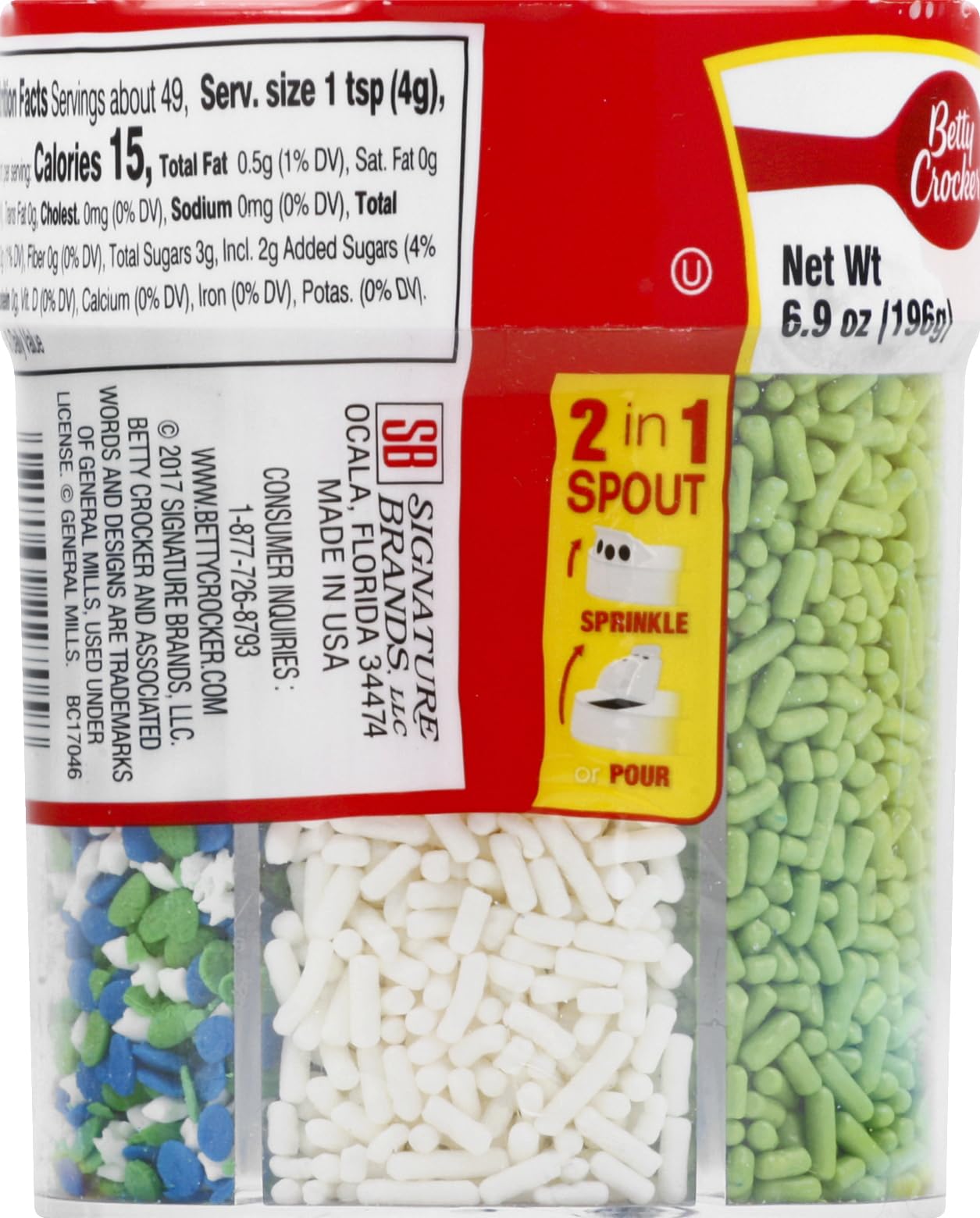 Betty Crocker 6 Color Sprinkles, Dessert Sprinkles for Cake, Cupcake, Cookie Decorating, Baking, Green, Blue, and White Blends 6.9oz