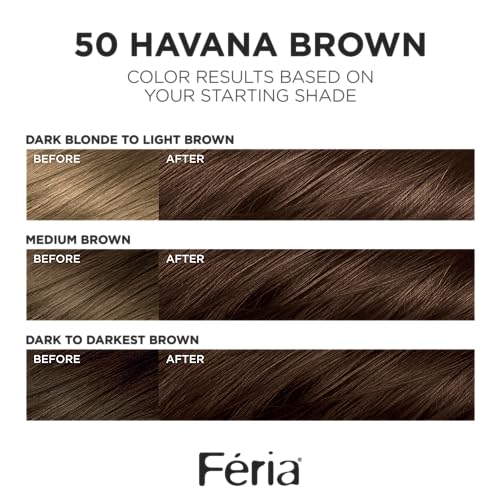 L'Oreal Paris Feria Multi-Faceted Shimmering Permanent Hair Color, 50 Havana Brown (Medium Brown), Pack of 1 Hair Dye Kit