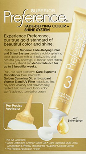 Since 1973, L'Oréal Superior Preference has been our gold standard in permanent hair color – delivering extraordinary shine and luminous hair color that lasts and lasts. What makes Superior Preference hair color so special is our unique Fade-Defying Color and Shine System that pairs our translucent gel formula with our famous Care Supreme Conditioning treatment. The end result is beautifully crafted, long lasting hair color with depth and dimension. Available in over 50 luminous shades so you can find your own signature color.