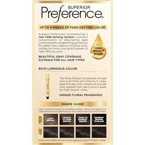 L'Oreal Paris Superior Preference Luminous Fade-Defying Permanent Hair Color, Hair Dye For Up to 9 Weeks of Radiance, Cool Darkest Brown 3C, 1 Hair Dye Kit