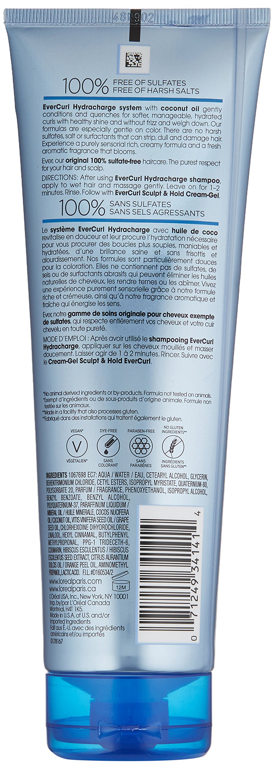 L’Oral Paris EverCurl sulfate free deep conditioner is anti-frizz, hydrates, and smooths curly hair. Coconut oil helps control frizz and weigh down for 48-hour curl definition*. Our formulas are especially gentle on curls and color treated hair. There are no harsh sulfates, salts or surfactants that can strip, dull and damage hair like other curly hair products. Experience a purely sensorial lush, luxurious lather and a fresh aromatic fragrance that blooms. • Anti-Frizz Definition • Sulfate Free • Non-Drying • Coconut Oil *system of shampoo, conditioner, and treatment After using EverCurl Hydracharge shampoo, apply to wet hair and massage gently. Leave on for 1-2 minutes. Rinse. Follow with EverCurl Sculpt & Hold Cream-Gel.