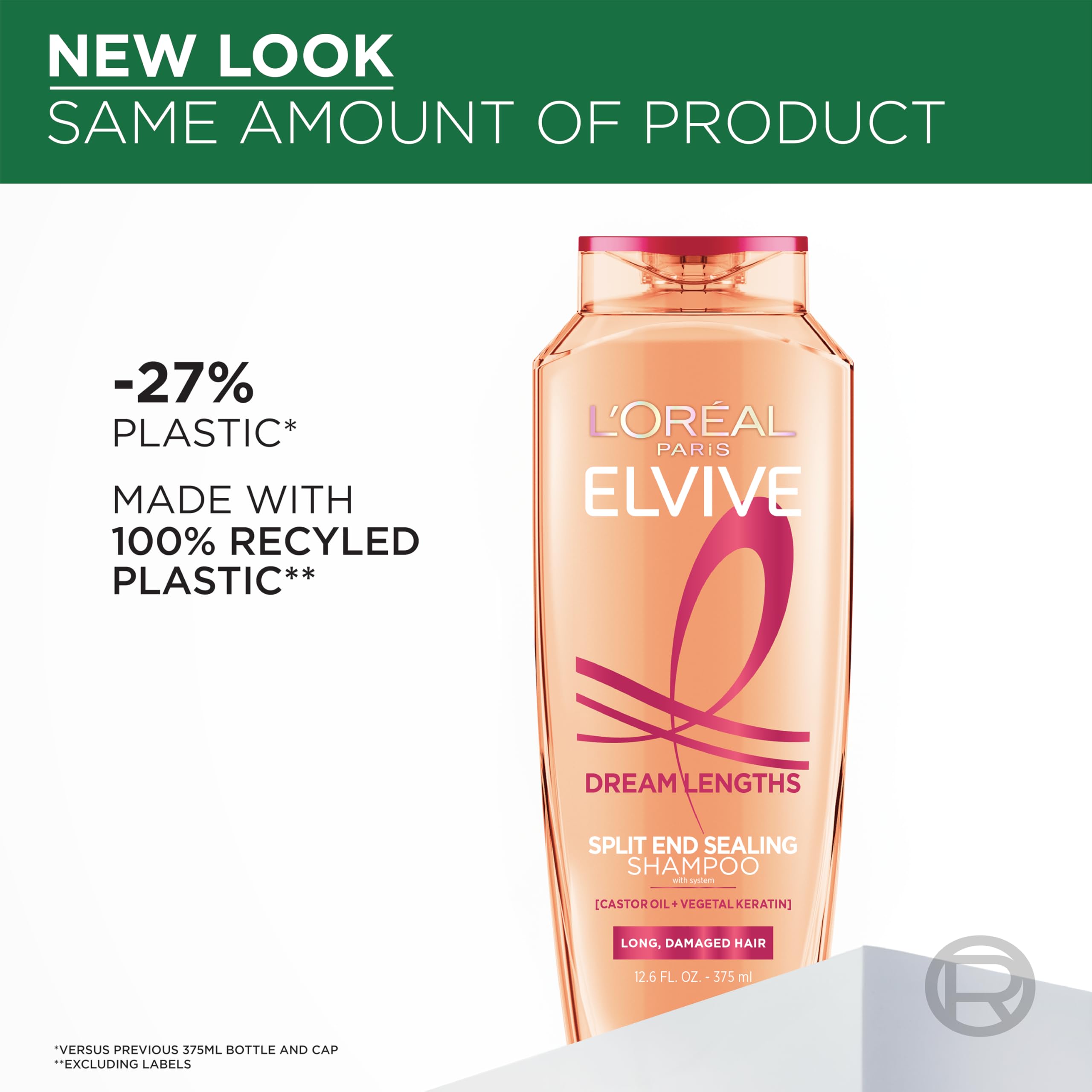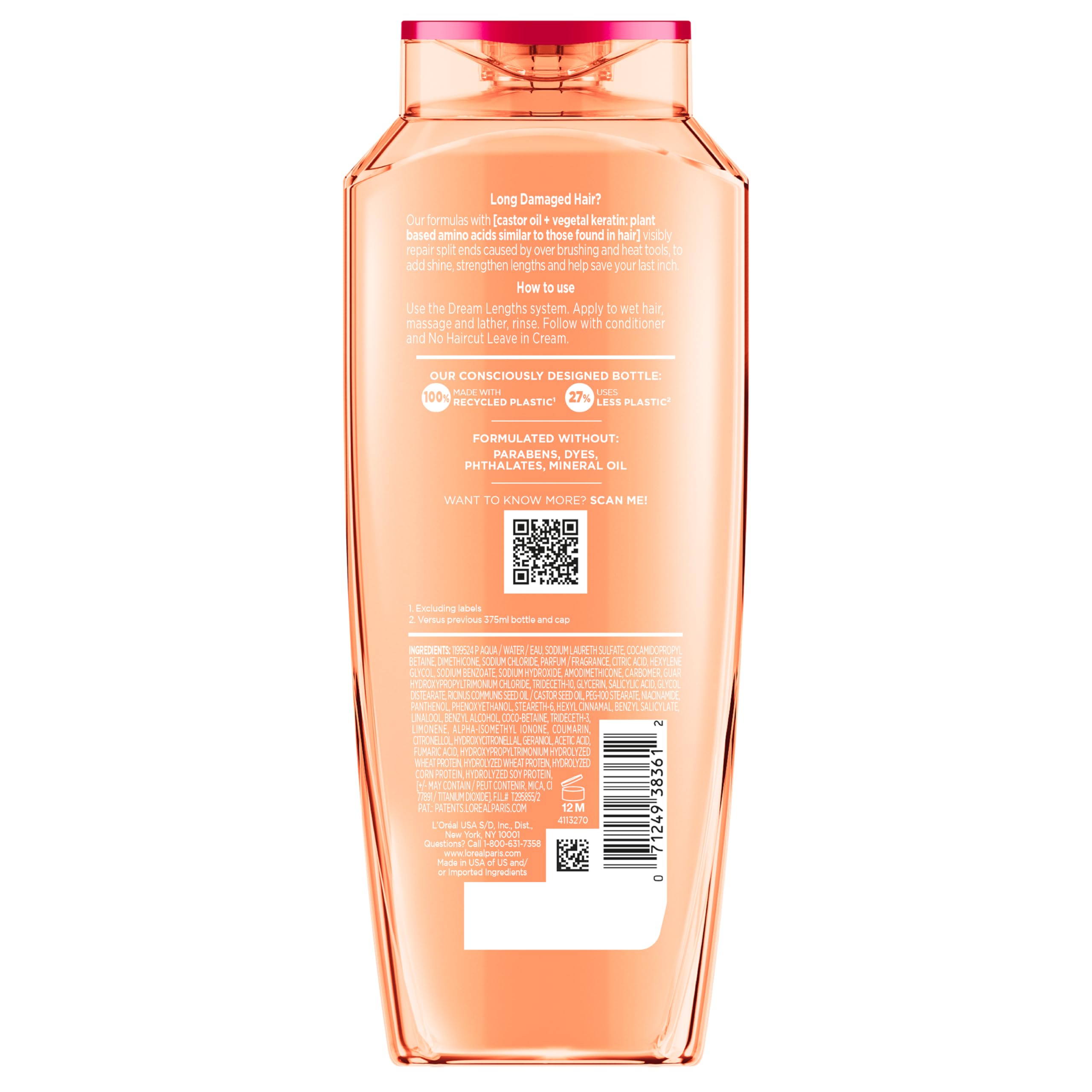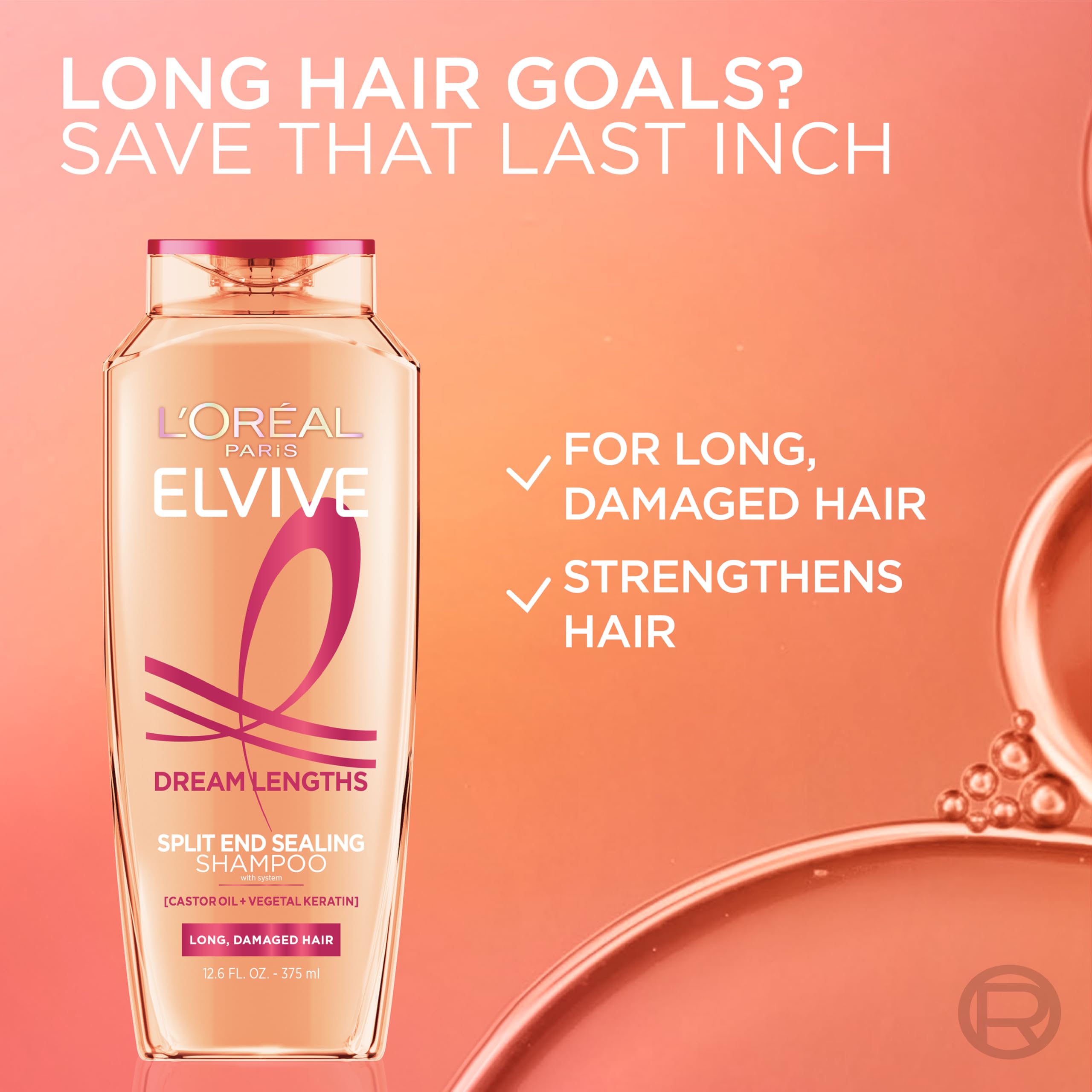 L'Oreal Paris Elvive Dream Lengths Restoring Shampoo with Fine Castor Oil and Vitamins B3 and B5 for Long, Damaged Hair, Visibly Repairs Damage Without Weighdown With System, 12.6 Fl; Oz