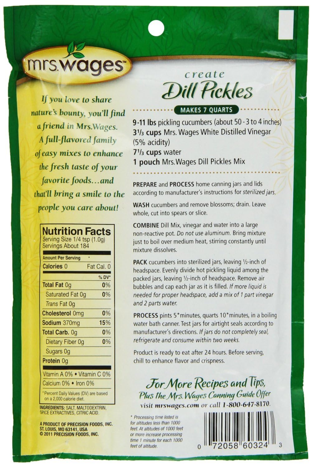Mrs. Wages Quick Process Dill Pickle Canning Mix, 6.5 Ounce (Value case of 12)
