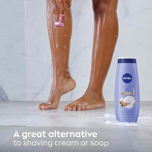 Give your skin the care it deserves with NIVEA Nourishing Shea Butter Body Wash with Nourishing Serum. This moisturizing body wash provides nourishing moisture for soft, smooth and healthy-looking skin. It's enriched with Shea Butter, plus a unique blend of naturally-derived* oils, Provitamin B5 and Vitamin E. This shea butter body wash gently cleanses and gives you a fresh and hydrated skin feeling. Ideal for everyday use, this women's body wash can also be used as an alternative to shaving cream. Plus, this moisturizing body wash is microbiome gentle and free from parabens, phthalates and microplastic particles. This women's body wash uses 88% naturally derived ingredients* has a 94% biodegradable formula**, and is packaged in a bottle made from 50% recycled plastic***, reflecting NIVEA's commitment to sustainability. For skin that feels completely nourished, pair this body wash with NIVEA Shea Nourish Body Lotion. *Naturally derived ingredients, including purified water, have undergone processing while retaining a majority of their natural molecular structure. 12% skin safe synthetics are included to maintain the integrity of the formula. **as per OECD or equivalent methods ***excluding label
